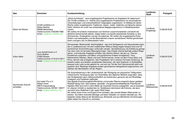 Landkreis/ Idee Einreicher Kurzbeschreibung Preisgeld Stadt Der Kulturverein Frauenstein bietet seit 2 Jahren mit dem ortsansässigen Kofferstudio- Trickfilm Ferienprojekte zur regionalen Geschichte für Kinder an. Mit dem geplanten kulturellen Mitmach- Projekt soll ein kontinuierliches Angebot in einem leerstehenden Ladengeschäft in Frauenstein geschaffen werden. Gleichzeitig wird damit ein leeres Schaufenster am Markt belebt und das Angebot sichtbar gemacht. Kulturverein Frauenstein e.V. Als erstes gemeinsames Projekt sollen die traditionellen Erzgebirgsfiguren für Trickfilme Nils Kochan offene Trickfilmwerkstatt angepasst und eingesetzt werden. Damit gelingt eine Verbindung von Tradition und Landkreis 09623 Frauenstein 5.000,00 EUR im Schaufenster digitalen Welten. Mittelsachsen Telefonnummer 0373269381 Gleichzeitig werden damit folgende positive Effekte erreicht: Email post@kochan.net - Entwicklung von Medienkompetenz durch den Wandel vom reinen Konsumenten von Medieninhalten zu Produzenten von Trickfilmen unter Anleitung von erfahrenen Medienpädagog*innen. - Belebung des Marktplatzes – lädt zum Verweilen und Staunen ein. - Verbindung der Generationen. Die AG Radschlag bei 'Tharandt For Future' beschäftigt sich seit knapp einem Jahr mit der Konzeption eines bürgerschaftlich organisierten und spenden-getragenen (E-)Lastenrad- und Anhängerverleihs für die Region Tharandter Wald. Inspiriert vom Erfolg der Dresdener Initiative Frieda und Friedrich haben wir 2021 bereits Dresdener (E-)Lastenräder beim Tharandter Naturmarkt vorgestellt und auf ihre Peter Urban Landkreis Spendenbasierter Bergtauglichkeit geprüft. Das Feedback der Besucher_innen hat uns ermutigt und eine 01737 Tharandt Sächsische- Lastenradverleih - potentiell hohe Nachfrage aufgezeigt. Bisher wurden verschiedene mögliche Standorte, 5.000,00 EUR Telefonnummer +49 179 47 47 Schweiz Mobilitätsnetz Nutzer_innen und Unterterstützer_innen in Tharandt, Hartha und weiteren Dörfern 169 Osterzgebirge gefunden. Email urban@subnet.email im kommenden Jahr möchten wir erste Verleihstationen in Tharandt und Hartha in Zusammenarbeit mit dem lokalem Gewerbe realisieren, in denen qualitativ hochwertige und bergtaugliche E-Lastenräder und -Anhänger ausgeliehen werden können. Dabei können je nach Standort bedarfsgerechte Angebote gemacht werden. Das Paddagshaus in Pappendorf wurde um 1621 erbaut und ist das älteste Gebäude der Gemeinde Striegistal. Das markante Fachwerkhaus wird aktuell durch den gemeinnützigen Heimatverein Striegistal e. V. mit viel Eigeninitiative und Spenden saniert. Aktuell wurden das Dach neu eingedeckt, Teile des Fachwerkes instand gesetzt und die Grundmauern restauriert. Mit dem Fördergeld der simul+ soll die historische Heimatstube Sanierung Marcel Herklotz wieder alten Glanz bekommen (Putzarbeiten, Fußboden, Kasettendecke usw.). Das Landkreis Heimatstube/Küche 09661 Striegistal Gebäude soll eine öffentliche Nutzung bekommen: Der Ortskern soll weiter belebt werden, 10.000,00 EUR Mittelsachsen Paddags Haus (um 1621) Telefonnummer 01742539139 es sollen Kurse und Ausstellungen angeboten werden, Führungen für Schulklassen Email herklotz@googlemail.com stattfinden, der Raum vermietet werden können und ein Ort für Vereine geschaffen werden. Zusätzlich soll mit dem Geld eine kleine Küche eingebaut werden, um die Nutzungsmöglichen (z.B. als Kräuterküche) zu erweitern. Das Gebäude liegt direkt am Straussenhofrundwanderweg und soll auch als Rast (Wanderziel) mit Museun genutzt werden. 41