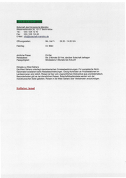 Botschaft der Islamischen Republik Mauretanien Axel-Springer-Straße 54 a (Eingang Kommandantenstr. 80), 10117 Berlin-Mitte Tel.: 030/206 58 83 Fax: 030/206 747 50 Öffnungszeiten: Mo., Di., Mi., Do. 09.00 - 15.00 Uhr Fr. 10.00 - 12.00 Uhr Feiertag: 28. November ACHTUNG: „Stand 12/2016: Die Botschaft hat mitgeteilt, dass derzeit keine Visaerteilung dort möglich ist. Visa müssen für sämtliche Reisearten und Passarten bis auf weiteres bei Einreise am Flughafen eingeholt werden.“ Diplomaten- und Dienstpässe: VN, 1 Antrag, 1 Foto Reisepässe: VN, 1 Antrag, 1 Foto und Gebühr in bar Passgültigkeit: Mindestens 6 Monate Visagültigkeit: 3 Monate ab Ausstellung Gebühren: Transitvisum € 120,00 Kurzaufenthalt bis zu 3 Monate € 160,00 Jahresvisum € 200,00 (Aktuelle Gebühren für Reisepässe sind jeweils bei den Botschaften zu erfragen oder auf der jeweiligen Homepage der Botschaft einzusehen). Zahlbar nur per Überweisung oder per Check Bearbeitungszeit: 10 Arbeitstage Visa für Dienstreisen werden auch bei der Einreise erteilt. Bei Beantragung über das Auswärtige Amt wird Überweisung der Gebühren auf folgendes Konto erbeten: Deutsche Bank IBAN: DE59 1007 0000 0727 6116 00 BIC (SWIFT-Code): DEUTDEBBXXX