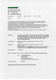 Botschaft der Republik Ruanda Jägerstraße 67-69,10117 Berlin Tel.: 030/209 165 90 Fax: 030/209 165 959 E-Mail: info@rwanda-botschaft.de Öffnungszeiten: Mo. bis Fr. 09.00 - 13.00 Uhr 14.00 - 17.00 Uhr Feiertag: 01. Juli Corona-bedingt ist bei Einreise ein negativer Covid-19-Test nicht älter als 72 Stunden vorzulegen. Es werden nur SARS-CoV 2 Real Time Polymerase Chain Reaction (RT-PCR) Tests akzeptiert. Für begleitete Kinder unter 5 Jahren ist der Test nicht erforderlich. Vollständig geimpfte Personen und Kinder und Jugendliche unter 18 Jahren müssen nach Ankunft nicht mehr in Quarantäne, sondern begeben sich ausschließlich in Selbstisolation zuhause oder im Hotel. Impfzertifikate sind bei Einreise vorzuweisen. Alle ankommmenden Reisenden müssen vor Abreise ein "Passenger locator“ Formular ausfüllen und das Covid-Test-Ergebnis hochladen. Siehe dazu www.rbc.gov.rw. In Bezug auf ungeimpfte Reisende, Transitreisende siehe: https://www.rbe.gov.rw/index.php?id=745 ACHTUNG: Ab sofort ist bei Einreise nach Ruanda der Nachweis eines gültigen Gelbfieberimpfschutzes zu erbringen. Reisende können sich auch direkt am Flughafen Kigali impfen lassen. Die Kosten hierfür belaufen sich derzeit auf US $ 40,00. An anderen Einreisegrenzstellen ist dieser Service nicht gewährleistet! Amtliche Pässe: alle Reisen visapflichtig. Antrag zweifach ausfüllen, VN, 2 Fotos gebührenfrei Reisepässe: alle Reisen visapflichtig, Antrag zweifach ausfüllen, VN, 2 Fotos Gebühr: € 40,00 (Aktuelle Gebühren für Reisepässe sind jeweils bei den Botschaften zu erfragen oder auf der jeweiligen Homepage der Botschaft einzusehen). Bearbeitungszeit: 7 Arbeitstage Visum für Dienstreisen kann auch online beantragt werden: www.migration.gov.rw/singleform.php dort 1. www.migration.gov.rw 2. Sprachauswahl 3. Public Forms 4. \/isa oder Single Entry Visa Im Anschluss erscheint das online-Formular. Kosten bei Einreise: USD 30,00 Aufenthaltserlaubnis für längeren Aufenthalt wird nach Einreise erteilt