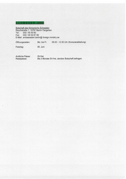 Botschaft der Republik Serbien Taubertstraße 18, 14193 Berlin-Grunewald Tel: 030/895 770 229 030 / 895 770 372 Fax: 030/825 22 06 Öffnungszeiten: Mo. bis Fr. 09.00 - 13.00 Uhr Mi. 15.00 - 18.00 Uhr Feiertag: 27. April Alle Pässe: Dienstreisen sind visafrei Versetzungsreisen sind visapflichtig! (ausgenommen Botschafter und Militärattache inkl. Familienangehörige) Das sog. „Initialvisum“ ist lediglich erforderlich, wenn am Ende auch . gesandtschaftsrechtlich beim Außenministerium angemeldet wird, d.h. für alle entsandten Botschaftsangehörigen (Ausnahmen siehe oben) und ggf. in Einzelfällen für sog. „Pro-Forma-Anmeldungen“, nicht aber für alle sonstigen entsandten Inhaber von Dienst-/Reisepässen der Mittler/Dt. Institutionen wie z.B. des Goethe-Instituts, Lehrer an serbischen Schulen und Gymnasien . Die Mittler melden selbständig auf Basis der jeweiligen Rechtsgrundlagen polizeilich an und die Aufenthaltserlaubnis wird dann vor Ort erteilt. SV mit VN 1 Antrag, 1 Foto Note: Geburtsdatum, Geburtsort, Passart und Pass-Nr. ‚ Passgültigkeit Passgültigkeit: Mindestens 6 Monate Bearbeitungszeit: 20 Arbeitstage und länger