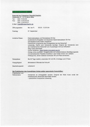 Botschaft der Republik Bulgarien Mauerstraße 11, 10117 Berlin-Mitte Tel.: 030 / 201 09 22/26 Fax: 030 / 208 68 38 Website: www.botschaft-bulgarien.de Öffnungszeiten: Mo., Di., Do., Fr. 09.00 - 11.30 Uhr Mi. geschlossen Feiertag: 03. März Alle Pässe: SV-frei Passgültigkeit: Mindestens 6 Monate über den Aufenthalt hinaus