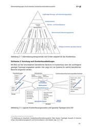 Rahmenbedingungen Cloud-basierter Krankenhausinformationssysteme 2.1.1 Topologie eines KIS – Verortung von Systemen Für Krankenhausinformationssysteme ergibt sich eine System- bzw. eine Anwendungsland- schaft, für die topologisch bzw. mit Blick auf die logische Systemsicht – also unabhängig von der technischen Implementierung z.B. in verschiedenen Servern, virtuellen Maschinen oder in einem technischen System - im Grunde vier Sichtweisen eingenommen werden können: • Verortung eines Systems bzw. eines Softwaremoduls in der Informationssys- tempyramide nach Scheer6 • Verortung eines Systems bzw. eines Softwaremoduls in der logischen Kranken- hausorganisationsstruktur • Verortung eines Systems bzw. eines Softwaremoduls nach betrieblicher Ebene • Klassifikation nach dem Charakter: horizontal, teilhorizontal oder vertikal. Dabei spielt es einerseits eine Rolle, welche Systeme eher kooperieren oder eher aufeinander aufbauen und andererseits was der betriebliche Gegenstandsbereich eines Systems ist. Sichtweise 1: Verortung in der Informationssystempyramide Schon 1995 formulierte Scheer: „Management-Informationssysteme setzen Dispositionssys- teme voraus, die die Datenbasis erzeugen, auf die dann entsprechende Verdichtungsproze- duren zur Ermittlung von Führungsinformationen zugreifen.“7 Vor diesem Hintergrund skiz- zierte Scheer die Informationssystempyramide, ein Schichtenmodell, das einerseits verdeut- licht, wie Systeme aufeinander aufbauen, andererseits aber auch, wie die operative Bedeutung der einzelnen Systeme „von unten nach oben“ abnimmt, und gegenläufig die strategische Be- deutung zunimmt. Informationssysteme auf einer höheren Ebene können in der Regel aber ohne jene auf der unteren Ebene nicht sinnvoll betrieben werden, da sie auf die Daten der darunter liegenden Systeme angewiesen sind. In Anlehnung an Scheer ergibt sich für ein Kran- kenhaus die nachfolgend gezeigte Informationssystempyramide. 6 S. Scheer: Wirtschaftsinformatik 7 Scheer: Wirtschaftsinformatik Referenzmodelle für industrielle Geschäftsprozesse. 1995 - 18 -