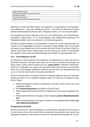 Rahmenbedingungen Cloud-basierter Krankenhausinformationssysteme Vitalwertdokumentation Medikamentenverabreichungsdokumentation Wunddokumentation Schmerzdokumentation Medikamentenverabreichungsdokumentation … Dabei kann vor allem die Dokumentation der Ergebnisse von diagnostischen und therapeuti- schen Maßnahmen - die ja sehr vielfältig sein können – hinsichtlich der Menge der einzelnen isolierten Dokumentationsfunktionen sehr umfangreich werden und in die Tausende gehen. Eine Detaillierung einzelner Bereiche wurde z.B. in den Förderkriterien zum Krankenhauszu- kunftsgesetz vorgenommen, z.B. für Funktionalitäten eines Medikationsmanagements, der Pflegedokumentation oder eines Aufnahme- und Entlassmanagements. Mit Blick auf großen Umfang an Funktionalitäten in einem KIS und der weitreichenden Gra- nularität von oft unabhängig voneinander verwendeten Funktionalitäten stellt sich prinzipiell die Frage, wie eine Migration bzw. die Granularität eines SaaS-Cloud-KIS sein kann. Einem mo- dularen Cloud-Ansatz kommt dabei zugute, dass die Nutzung der meisten Funktionalitäten sehr speziell in einem bestimmten Behandlungskontext erfolgen und gut abgrenzbar sind. 4.4.3 Cloud-Migration von KIS Die Software für die Kernsysteme und Subsysteme in Krankenhäusern ist über viele Jahre bis Jahrzehnte entstanden und basiert auch heute zum Teil noch auf Software-Technologien aus diesen Jahren. Solche Systeme werden auch als „Legacy-System“ bezeichnet, dementspre- chend wir im Folgenden vom „Legacy-KIS“ gesprochen. Diese Systeme lassen eine echte Mig- ration hin zu Cloud-fähigen webbasierten Systemen zumeist nicht ohne Neuimplementierung zu, da ihr Code für diese Zwecke nicht wiederverwendbar ist. Damit wird deutlich, dass es für Legacy-KIS einer schrittweisen Migration oder einer Neuimple- mentierung bedarf. Für ein migratives Vorgehen stellen sich einige der vorangehend aufge- führten Fragen: • Welche fachlogischen Module mit definiertem „Bounded Context“ können für ein KIS angegeben werden? • Wie maximal feingranular kann/sollte ein Cloud-KIS sein? • Welche gekapselten Subsysteme können insgesamt als Cloud-Lösung ausgelagert wer- den? • Welche Systeme/Module sind aufgrund loser Kopplung primäre Migrationskandida- ten? • Welche Systeme/Module sind aufgrund vielfacher Verwendbarkeit/Notwendigkeit pri- märe Migrationskandidaten? Grobgranulares Cloud-KIS Mit Blick auf die heute in den Krankenhäusern vorherrschenden heterogenen KIS erscheint es in einem ersten Schritt auf den ersten Blick als einfachster Lösungsansatz, dass einzelne lose gekoppelte Subsysteme – die ja heute auch schon nur über Nachrichtenaustausch z.B. via Kom- - 201 -