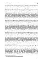 Rahmenbedingungen Cloud-basierter Krankenhausinformationssysteme interoperable standardkonforme Implementierung von medizinischen, aber auch administrati- ven Microservices. Zusammenfassend ergeben sich folgende Lösungsvorschläge für die Legacy-Systeme/Her- steller: • Öffnung der Systeme durch Ergänzung um FHIR-Services zum Abruf und ggf. der Rück- übergabe wesentlicher (Kontext)Daten an/von Cloud-Subsysteme und -Anwendungs- module, damit Ermöglichung der Integration innovativer Funktionsmodule von Drittan- bietern. • Implementierung von GUI-Elementen zum Aufruf von Cloud-Anwendungsmodulen an geeigneten Stellen bzw. eine generische parametrierbare Aufruf-Bildschirmseite/ Me- nüleiste • Zurverfügungstellung oder Ankopplung eines (Clinical) Contextmanagers und eines Event-Bus für System-Offenheit und moderne Interoperabilität • Konkrete Kontextlieferungen bzw. FHIR-Services für von vielen Cloud-Modulen benö- tigten Kontextdaten wie Patient, Fall, Auftrag, Diagnosen usw. • Öffnung und Interoperabilität in dem Sinne, dass Repository-Inhalte und Semantik auch aus DaaS-Instanzen bezogen/genutzt werden können. • Anbindung von in der Cloud verfügbaren Basisdiensten wie z.B. Single Sign On, Policy- und Rechtemanagement, Kryptographiedienste, Pseudonymisierungsdienste, Zeitsyn- chronisationsdienste • Sukzessive Umstellung von Anwendungsfunktionalitäten auf CMSM Anforderungen an die CMSM und CMSM-Hersteller: • Berücksichtigung der internationalen Standards für Domänenmodell, Semantik und Interoperabilitäts-API, vor allem von HL7, IHE und SNOMED, aber auch andere Se- mantikstandards • Offengelegtes Interoperabilitäts-API • Hohe Aufgabenangemessenheit der GUI • Durchgehend Web-basiert und Web-nutzbar • Responsives Verhalten • Bezug von standardisierter Semantik und Bezugsobjekten wo möglich aus verfügba- ren Cloud-Repositories (DaaS-Instanzen) • Nutzung von Open Source Werkzeugen, Bibliotheken und Komponenten für die Im- plementierung Abschließend sei hinsichtlich der Migration auf einen praxisorientierten 8-Schritte Vorschlag verwiesen : 443 • Entwicklung einer DevOps-Kultur nebst Praktiken • Beschleunigung bestehender Anwendungen mithilfe “schneller Monolithen”, d.h. Mig- ration der aktuellen monolithischen Architektur zu einer modulareren, service-basier- ten Architektur mit API-basierten Kommunikation wo möglich 443 Quelle: https://www.redhat.com/cms/managed-files/mi-path-to-cloud-native-apps-ebook-f12255cs-201805- a4-de.pdf. - 288 -