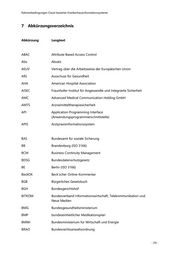 Rahmenbedingungen Cloud-basierter Krankenhausinformationssysteme 7 Abkürzungsverzeichnis Abkürzung Langtext ABAC Attribute Based Access Control Abs. Absatz AEUV Vertrag über die Arbeitsweise der Europäischen Union AfG Ausschuss für Gesundheit AHA American Hospital Association AISEC Fraunhofer-Institut für Angewandte und Integrierte Sicherheit AMC Advanced Medical Communication Holding GmbH AMTS Arzneimitteltherapiesicherheit API Application Programming Interface (Anwendungsprogrammierschnittstelle) APIS Arztpraxisinformationssystem BAS Bundesamt für soziale Sicherung BB Brandenburg (ISO 3166) BCM Business Continuity Management BDSG Bundesdatenschutzgesetz BE Berlin (ISO 3166) BeckOK Beck’scher Online-Kommentar BGB Bürgerliches Gesetzbuch BGH Bundesgerichtshof BITKOM Bundesverband Informationswirtschaft, Telekommunikation und Neue Medien BMG Bundesgesundheitsministerium BMP bundeseinheitlicher Medikationsplan BMWi Bundesministerium für Wirtschaft und Energie BRAO Bundesrechtsanwaltsordnung - 292 -