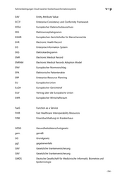 Rahmenbedingungen Cloud-basierter Krankenhausinformationssysteme EAV Entity Attribute Value ECCF Enterprise Consistency and Conformity Framework EDSA Europäischer Datenschutzausschuss EEG Elektroencephalogramm EGMR Europäischen Gerichtshofes für Menschenrechte EHR Electronic Health Record EIS Enterprise Information System EKG Elektrokardiogramm EMR Electronic Medical Record EMRAM Electronic Medical Records Adoption Model ENV Europäischer Normvorschlag EPA Elektronische Patientenakte ERP Enterprise-Resource-Planning EU Europäische Union EuGH Europäischer Gerichtshof EUV Vertrag über die Europäische Union EWR Europäischer Wirtschaftsraum FaaS Function as a Service FHIR Fast Healthcare Interoperability Resources FINK Finanzbuchhaltung im Krankenhaus GDSG Gesundheitsdatenschutzgesetz gem. gemäß GG Grundgesetz ggf. gegebenenfalls GKV Gesetzliche Krankenversicherung GKV Gesetzliche Krankenversicherung GMDS Deutsche Gesellschaft für Medizinische Informatik, Biometrie und Epidemiologie - 294 -