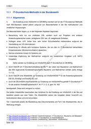 Anlagen A-960/1 3. Im InfoSichhK sollen möglichst viele Anteile / Kapitel werkzeuggestützt bearbeitet und dokumentiert werden. Details zu Gliederung und Inhalt des InfoSichhK sowie zur Nutzung des Werkzeugs regeln die beiden Arbeitshilfen zur Erstellung von InfoSichhKDSt bzw. InfoSichhKProj. Das 141 einheitliche Werkzeug und die zugehörigen MetadatenBw werden im Intranetauftritt http://infosichh.bundeswehr.org unter der Rubrik „Fachinformationen / IT-Grundschutz“ bereit gestellt 142 (siehe Nr. 124) . Im einheitlichen Werkzeug sind ausschließlich die MetadatenBw zu nutzen. Diese Metadaten enthalten die durch das BSI veröffentlichten IT-Grundschutzkataloge sowie die aktuellen bundwehrspezifischen Ergänzungen. 11.1.2 IT-Grundschutzkatalog der Bundeswehr 4. Das KdoCIR veröffentlicht periodisch (angestrebt jährlich, maximal zweimal im Jahr) einen 143 fortgeschriebenen IT-Grundschutzkatalog der Bw im IntranetBw , der neben den Bausteinen und st en Maßnahmen des BSI ergänzende bundeswehrspezifische Bausteine und Maßnahmen enthält. Dieser sd i ng bzw. die zugehörigen MetadatenBw (siehe Nr. 3) sind zur Erstellung und Fortschreibung (siehe Nr. 6) ru von InfoSichhK nach IT-Grundschutz zwingend zu nutzen. de Än 5. Zur Fortschreibung des IT-Grundschutzkataloges der Bw ist – neben der zentralen Erstellung m de querschnittlicher Bausteine – die Zuarbeit durch die zuständigen Rollenträgerinnen und Rollenträger ht für InfoSichhK (z.B. Projekte und DSt) eine wesentliche Grundlage. Die DEUmilSAA, die ic tn Regionalzentren des ZCSBw und die ISBOrgBer werten dazu vorliegende oder in Erstellung befindliche eg rli InfoSichhK bezüglich neuer Bausteine und InfoSichh-Maßnahmen aus und übermitteln geeignete neue te un Bausteine / InfoSichh-Maßnahmen mit einer Empfehlung zur Berücksichtigung im Rahmen der k Fortschreibung des IT-Grundschutzkataloges der Bw an die Referatsgruppe InfoSichh im KdoCIR uc Abteilung Planung. dr us rA 6. Nach Veröffentlichung eines neuen IT-Grundschutzkatalogs der Bw sind die neuen Bausteine se ie und Maßnahmen im Rahmen der Fortschreibung der InfoSichhK (siehe Abschnitte 6.3.2.3 und 6.3.3.3)‚ D innerhalb eines Jahres in die InfoSichhK einzuarbeiten. 7. Ein Überblick über die im IT-Grundschutzkatalog der Bw vorhandenen Bausteine ist auf der Intranetseite http://infosichh.bundeswehr.org im Bereich „Fachinformationen / IT-Grundschutz / Bausteine und Metadaten“ zu finden. 8. Der IT-Grundschutzkatalog teilt sich in Baustein-, Gefährdungs- und Maßnahmenkataloge auf. Alle dort aufgeführten Bausteine, Gefährdungen und Maßnahmen tragen Referenznummern, damit diese vereinfacht referenziert werden können (siehe Nrn. 12 – 13). 141 Bausteine und Maßnahmen aus dem IT-Grundschutzkatalog der Bundeswehr 142 Informationen und Metadatenupdates für das einheitliche Werkzeug sind im IntranetBw unter http://infosichh.bundeswehr.org im Bereich „Fachinformationen / IT-Grundschutz / SAVe“ veröffentlicht. 143 http://infosichh.bundeswehr.org im Bereich „Fachinformationen / IT-Grundschutz / Bausteine und Metadaten“ Seite 131 Stand: März 2019