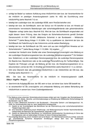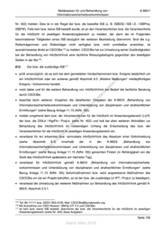 A-960/1 Dezentrale Überwachung der Informationssicherheit Verstößen regeln Abschnitt 8 und die A-960/5 „Behandlung von Informationssicherheitsvorkommnissen und Unterstützung von disziplinaren und strafrechtlichen Ermittlungen“ (siehe Bezug Anlage 11.15 (lfdNr. 59)). 7.4.2 Zuständigkeiten 731. Die Entscheidung zur Durchführung einer InfoSichhPrfg trifft der zuständige Rollenträger bzw. die zuständige Rollenträgerin (z.B. DStLtr / KtgtFhr / Kdr EinsStO / Ltr IPT / ProjLtr) für seinen bzw. ihren nachgeordneten Bereich auf Empfehlung des bzw. der jeweils zuständigen ISB oder auf Veranlassung durch den bzw. die CISO Ressort, CISOBw oder das ZCSBw. 732. InfoSichhPrfg sind von der Prüforganisation des ZCSBw (die Incident Response Teams im CSOCBw, alle Regionalzentren (vgl. Nr. 340) und alle Schwachstellenanalyse-Teams) durchzuführen. st 733. Werden im Rahmen einer InfoSichhPrfg anlassbezogene Ermittlungen (Verdacht auf en missbräuchliche oder unerlaubte Nutzung von IT) sd erforderlich,i ist die Beteiligung der ng Personalvertretung zu prüfen (gemäß Rahmendienstvereinbarung über ru die Protokollierung de informationstechnischer Systeme, siehe Bezug Anlage 11.15 (lfdNr. 40), dort § 7). Än m 7.4.3 Dokumentation de ht 734. ic Der bzw. die Prüfende hat das Ergebnis der InfoSichhPrfg in einem formlosen Bericht zu tn eg dokumentieren und dem bzw. der betroffenen Verantwortlichen im Anwendungsberich (z. B. rli DStLtr / KtgtFhr / Kdr EinsStO, ProjLtr) sowie Anordnenden vorzulegen. Mängel in der InfoSichh sind te un zu erläutern. Der bzw. die Prüfende schlägt Maßnahmen zur Abstellung der Mängel vor. Das Ergebnis k uc sowie die Dokumentation der Mängelbeseitigung sind zur InfoSichhDok (siehe Abschnitt 6.1.1 bzw. dr us 6.1.2) zu nehmen. Der Bericht ist bis zur vollständigen Abstellung ggf. festgestellter Mängel rA aufzubewahren. se ie 735. Die Beteiligung des MAD gemäß Nr. 709 ist durch die geprüfte Stelle zu prüfen. D Seite 102 Stand: März 2019