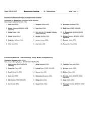 Stand: 09.05.2022 Bayerischer Landtag - 18 . Wahlperiode Seite 3 von 11 Ausschuss für Kommunale Fragen, Innere Sicherheit und Sport Vorsitzende/r: Dr. Runge Martin (BÜNDNIS 90/DIE GRÜNEN) Stellvertreter/in: Ländner Manfred (CSU) 1 . Adelt Klaus (SPD) 7 . Graupner Richard (AfD) 13 . Muthmann Alexander (FDP) 2 . Becher Johannes (BÜNDNIS 90/DIE 8 . Grob Alfred (CSU) 14 . Riedl Robert (FREIE WÄHLER) GRÜNEN) 3 . Dremel Holger (CSU) 9 . Dipl.-Verw.Wirt (FH) Hauber Wolfgang 15 . Dr. Runge Martin (BÜNDNIS 90/DIE (FREIE WÄHLER) GRÜNEN) 4 . Dünkel Norbert (CSU) 10 . Ländner Manfred (CSU) 16 . Schulze Katharina (BÜNDNIS 90/DIE GRÜNEN) 5 . Enghuber Matthias (CSU) 11 . Lorenz Andreas (CSU) 17 . Schuster Stefan (SPD) 6 . Gibis Max (CSU) 12 . Löw Stefan (AfD) 18 . Tomaschko Peter (CSU) Ausschuss für Wirtschaft, Landesentwicklung, Energie, Medien und Digitalisierung Vorsitzende/r: Schreyer Kerstin (CSU) Stellvertreter/in: Stümpfig Martin (BÜNDNIS 90/DIE GRÜNEN) 1 . Adjei Benjamin (BÜNDNIS 90/DIE 7 . König Alexander (CSU) 13 . Pschierer Franz Josef (CSU) GRÜNEN) 2 . Bergmüller Franz (AfD) 8 . Ludwig Rainer (FREIE WÄHLER) 14 . Schreyer Kerstin (CSU) 3 . Busch Michael C. (SPD) 9 . Mannes Gerd (AfD) 15 . Stöttner Klaus (CSU) 4 . Duin Albert (FDP) 10 . Miskowitsch Benjamin (CSU) 16 . Stümpfig Martin (BÜNDNIS 90/DIE GRÜNEN) 5 . Eibl Manfred (FREIE WÄHLER) 11 . Mittag Martin (CSU) 17 . Vogel Steffen (CSU) 6 . Karl Annette (SPD) 12 . Nussel Walter (CSU) 18 . Zwanziger Christian (BÜNDNIS 90/DIE GRÜNEN)