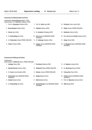Stand: 09.05.2022 Bayerischer Landtag - 18 . Wahlperiode Seite 5 von 11 Ausschuss für Wissenschaft und Kunst Vorsitzende/r: Brannekämper Robert (CSU) Stellvertreter/in: Dr. Heubisch Wolfgang (FDP) 1 . Prof. Dr. Bausback Winfried (CSU) 7 . Prof. Dr. Hahn Ingo (AfD) 13 . Pschierer Franz Josef (CSU) 2 . Brannekämper Robert (CSU) 8 . Halbleib Volkmar (SPD) 14 . Radler Kerstin (FREIE WÄHLER) 3 . Dorow Alex (CSU) 9 . Dr. Heubisch Wolfgang (FDP) 15 . Radlmeier Helmut (CSU) 4 . Dr. Eiling-Hütig Ute (CSU) 10 . Kurz Susanne (BÜNDNIS 90/DIE 16 . Dipl.-Betriebswirt Schalk Andreas (CSU) GRÜNEN) 5 . Dr. Faltermeier Hubert (FREIE WÄHLER) 11 . Dr. Oetzinger Stephan (CSU) 17 . Singer Ulrich (AfD) 6 . Flisek Christian (SPD) 12 . Osgyan Verena (BÜNDNIS 90/DIE 18 . Dr. Weigand Sabine (BÜNDNIS 90/DIE GRÜNEN) GRÜNEN) Ausschuss für Bildung und Kultus Vorsitzende/r: Stellvertreter/in: Gotthardt Tobias (FREIE WÄHLER) 1 . Atzinger Oskar (AfD) 7 . Fischbach Matthias (FDP) 13 . Dr. Spaenle Ludwig (CSU) 2 . Brendel-Fischer Gudrun (CSU) 8 . Gotthardt Tobias (FREIE WÄHLER) 14 . Dr. Strohmayr Simone (SPD) 3 . Dr. Cyron Anna Elisabeth (AfD) 9 . Häusler Johann (FREIE WÄHLER) 15 . Tomaschko Peter (CSU) 4 . Deisenhofer Max (BÜNDNIS 90/DIE 10 . Regitz Barbara (CSU) 16 . Triebel Gabriele (BÜNDNIS 90/DIE GRÜNEN) GRÜNEN) 5 . Dünkel Norbert (CSU) 11 . Rüth Berthold (CSU) 17 . Prof. Dr. Waschler Gerhard (CSU) 6 . Dr. Eiling-Hütig Ute (CSU) 12 . Schwamberger Anna (BÜNDNIS 90/DIE 18 . Wild Margit (SPD) GRÜNEN)