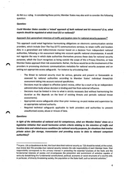 du Net a.a. ruling. In considering these points, Member States may also wish to consider the following question: Question: Could Member States consider a 'mlxed' approach af both national and EU measures? 1/ so, what aspects shou/d be regu/ated at which level (EU or national)? Approach 3(al: generalised retention of traffic and location data for national security purposes 10 This approach could entail legislation harmonising obligations on electronic communication service providers, which include Over-The-Top (OTT) communications services, to retain traffic and location data in a generalised and indiscriminate manner based on a decision from independent national authorities, following a risk assessment taking into account specific national circumstances. lt would not regulate the way in which state authorities themselves process these data for national security purposes, which the Court recognises as being outside the scope of the e-Privacy Directive, or how Member States approach their risk-assessments. Rather, the focus would be on the involvement of the providers in processing electronic communications metadata for national security purposes and on setting out appropriate access safeguards. For instance by articulating that: The threat to national security must be serious, genuine and present or foreseeable as assessed by national authorities according to Member States' individual threat/risk assessment taking into account national specificities. Decisions must be subject to effective (prior) review, either by a court or by an independent administrative body whose decision is binding and free from external influence. Decisions must be limited in time to what is strictly necessary (but without harmonising the duration as this depends an the level of existing threats and periodic national threat assessments). Appropriate access safeguards other than prior review e.g. ex-post review and supervision by an appropriate national authority. Required technical safeguards applicable to both providers and authorities to prevent unauthorised access, abuse or misuse of data. Questions: In light of the delineation of national and EU competences, what are Member States' vlews an a leglslatlve initiative that would harmonise certain criteria relatlng ta the retention af traffic and locatian dato and related access conditions for national security purposes, jor situations that invotve private actars (far starage, transmission and providing access to dato to relevant competent authorities)? 10 In para. 135 La Quadrature du Net, the Court described national security as: "[l]t should be noted, at the outset, that Article 4(2) TEU provides that national security remains the sole responsibility of each Member State. That responsibility corresponds to the primary interest in protecting the essential functions of the State and the fundamental interests of society and encompasses the prevention and punishment of activities capable of seriously destabilising the fundamental constitutional, political, economic or social structures of a country and, in particular, of directly threatening society, the population or the State itself, such as terrorist activities." 4
