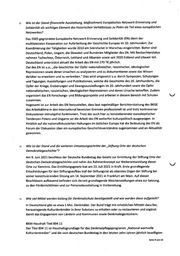 o Wie ist der Stand (finanzielle Ausstattung, Maßnahmen} Europäisches Netzwerk Erinnerung und Solidarität als wichtiges Element des historischen Verhältnisses zu Palen als Teil eines europäischen Netzwerkes? Das 2005 gegründete Europäische Netzwerk Erinnerung und Solidarität (EN) dient der multilateralen Kooperation zur Aufarbeitung der Geschichte Europas im 20. Jahrhundert. Zur Koordinierung der Tätigkeiten wurde 2010 ein Sekretariat in Warschau eingerichtet. Bisher sind Deutschland, Polen, Ungarn, die Slowakei und Rumänien Mitglieder des EN. Mit Beobachterstatus nehmen Tschechien, Österreich, Lettland und Albanien sowie seit 2020 Estland und Litauen teil. Deutschland unterstützt aktuell die Arbeit des EN mit 270 T€ jährlich. Ziel des EN ist u.a., ,,die Geschichte der Opfer nationalistischer, rassistischer, ideologischer Repressionen sowie deren Ursachen zu analysieren und zu dokumentieren sowie das Wissen darüber zu erweitern und zu verbreiten." Dies wird umgesetzt u.a. durch Symposien, Schulungen und Tagungen; Ausstellungen und Publikationen, welche die Geschichte des 20. Jahrhunderts, die Opfer der Kriege, Eroberungen und Zwangsaussiedlungen im 20. Jahrhundert sowie die Opfer nationalistischen, rassistischen, ideologischen Repressionen und deren Ursache betreffen. Zudem organisiert das EN Forschungs- und Bildungsprojekte und arbeitet in diesem Bereich mit Schulen V zusammen. Insgesamt ist zur Arbeit des EN festzustellen, dass laut regelmäßiger Berichterstattung des BKGE das Arbeitsklima in den international besetzten Gremien professionell ist und trotz kontroverser Diskussionen störungsfrei funktioniert. Trotz der auch hier zu konstatierender euroskeptischer Tendenzen Polens und Ungarns sei die Arbeit des EN weiterhin kulturpolitisch ausgewogen. In Hinblick auf die nationalfokussierten Haltungen im östlichen Europa hat die Bedeutung des EN als Forum der Diskussion über ein europäisches Geschichtsverständnis zugenommen und an Aktualität gewonnen. o Wie ist der Stand und die weiteren Umsetzungsschritte der „Stiftung Orte der deutschen Demokratiegeschichte"? Am 9. Juni 2021 beschloss der Deutsche Bundestag das Gesetz zur Errichtung der Stiftung Orte der deutschen Demokratiegeschichte und nahm das Rahmenkonzept zur Weiterentwicklung dieser Orte zur Kenntnis. Das Errichtungsgesetz trat am 23. Juli 2021 in Kraft. Erste grundlegende Entscheidungen für den Stiftungsaufbau traf der Stiftungsrat als oberstes Organ der Stiftung bei seiner konstituierenden Sitzung am 14. September 2021 in Frankfurt am Main. Auf diesen Beschlüssen aufbauend befinden sich derzeit grundlegende Weichenstellungen etwa zur Satzung, zu den Förderrichtlinien und zur Personalausstattung in Vorbereitung. o Wie viel Mittel werden bislang für Denkmalschutz bereitgestellt und wie werden diese aufgeteilt? In Deutschland gibt es etwa 1 Mio. Denkmäler. Der Bund trägt mit erheblichen Mitteln dazu bei, herausragende Kulturdenkmäler in ihrer Substanz zu erhalten oder zu restaurieren und ergänzt damit das Engagement von Ländern und Kommunen sowie Denkmaleigentümern. BKM-Haushalt Titel 894 11 Der Titel 894 11 ist Haushaltsgrundlage für das Denkmalpflegeprogramm „National wertvolle Kulturdenkmäler" und die vom deutschen Bundestag in den letzten zehn Jahren jährlich bewilligten Seite 4 von 15