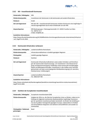 2.8.2 IKK – Investitionskredit Kommunen Förderstelle / Mittelgeber KfW Förderschwerpunkte Investitionen der Kommunen in die kommunale und soziale Infrastruktur Förderart Kredit Ziel und Gegenstand Mit dem IKK - Investitionskredit Kommunen erhalten Kommunen eine langfristige Fi- nanzierungsmöglichkeit durch einen Direktkredit von der KfW. Ansprechpartner KfW Bankengruppe | Palmengartenstraße 5-9 | 60325 Frankfurt am Main Tel.: 06974/ 31-0 E-Mail: info@kfw.de Zusätzliche Informationen https://www.kfw.de/inlandsfoerderung/%C3%96ffentliche-Einrichtungen/Kommunale-Unternehmen/Infrastruk- tur/; Zugriff 14.01.2020. 2.8.3 Kommunale Infrastruktur verbessern Förderstelle / Mittelgeber Landwirtschaftliche Rentenbank Förderschwerpunkte Infrastrukturmaßnahmen in ländlich geprägten Regionen Fördergebiet Ländlich geprägte Regionen Förderart Darlehen Ziel und Gegenstand Kommunale Infrastrukturmaßnahmen sowie andere Vorhaben und Einrichtun- gen der kommunalen Daseinsvorsorge, z.B. Investitionen in die Wasserversor- gung und Abwasserentsorgung, Straßenbau sowie kommunale Verwaltungsge- bäude und Bildungseinrichtungen, Investitionen in den Aufbau einer technolo- gieneutralen und open-access geeigneten Breitbandversorgung (z.B. Leerrohre, Glasfasernetze, Funklösungen). Ansprechpartner Landwirtschaftliche Rentenbank Tel.: 069/2107-700 Zusätzliche Informationen https://www.rentenbank.de/foerderangebote/laendliche-entwicklung/raeumliche-strukturmassnahmen/; Zugriff 14.01.2020. 2.8.4 Darlehen der Europäischen Investitionsbank Förderstelle / Mittelgeber Europäische Investitionsbank (EIB) Förderschwerpunkte Aufgabe der EIB ist es, die Ziele der Europäischen Union zu fördern, indem sie im Einklang mit allgemein anerkannten Bankenpraktiken langfristige Finanzierun- gen für spezifische Investitionsvorhaben bereitstellt. Sie fördert die Schaffung ei- nes durch größere Homogenität geprägten Europas, insbesondere im Hinblick auf wirtschaftliche Integration und stärkeren wirtschaftlichen und sozialen Zu- sammenhalt. Fördergebiet / Gebietsab- Bund grenzungen Projekt: PK19-040 Zweckverband Interkommunale Gewerbegebiete Wirtschaftsraum Kaiserslautern - Opportunitätsprüfung Final © FIRU mbH 2020 Seite 29 von 68
