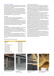 Oberste Geschossdecke Sommerlicher Wärmeschutz Je nach dem, wo sich bei einem Gebäude die obere Grenze Eine gute Wärmedämmung sorgt dafür, dass die Wärme im der wärmeübertragenden Hüllfläche befindet, ist dieses Bau- Winter nicht von innen nach außen abfließt und umgekehrt teil ebenfalls gut zu dämmen. im Sommer, dass die Hitze nicht so schnell von außen ins Entweder es handelt sich um die oberste Geschossdecke. Gebäudeinnere gelangt und die Wohnbereiche extrem auf- Dann befindet sich darüber noch ein unbeheizter Dachraum. heizt. Besonders anfällig sind hier ausgebaute Dachgeschosse, Die Wärmedämmung wird dann sinnvollerweise auf dieser da sie, wie auch Gebäude in Holzleichtbauweise, überwie- Decke (auf der kälteren Seite) eingebracht. Wichtig für die gend aus Dämmstoff bestehen. Auswahl des Dämmstoffs ist dabei, ob die Decke begehbar Als Maß für den sommerlichen Wärmeschutz wird die sog. oder nicht begehbar sein muss. Oft können dann schütt- oder Phasenverschiebung betrachtet. Sie ist der Zeitraum zwi- einblasfähige Materialien eingesetzt werden. schen dem Auftreten der höchsten Temperatur auf der Außenoberfläche des Bauteils bis zum Erreichen der höchsten Flachdach Temperatur auf der Innenseite. Das Durchwandern der Ein Flachdach wird von außen von oben gedämmt. Temperatur braucht Zeit. Je länger es dauert, umso größer Hier müssen dann Dämmstoffe eingesetzt werden, die u. a. ist die Phasenverschiebung und umso besser ist der Schutz druckfest und feuchteunempfindlich sind. vor Überhitzung auf der Innenseite. Je nach System sind zusätzliche Dichtungsbahnen unter- und Gerade bei der Dämmung von z.B. Schrägdächern sind dafür oberhalb der Dämmung notwendig. Im Zuge der Flachdach Dämmstoffe mit einer besonders hohen Wärmespeicher sanierung kann es zudem sinnvoll oder sogar notwendig sein, fähigkeit bzw. Wärmekapazität wichtig. Je höher die Wärme- zum wärmebrückenfreien Anschluss der Dach- an die Außen- kapazität, desto länger dauert die Phasenverschiebung. Sie wanddämmung den Dachüberstand zu verlängern. "puffert" die Wärme und gibt sie mit geringerer Temperatur und zeitlicher Verzögerung an den Innenraum ab. Hohe Schrägdach Wärmekapazitäten haben (schwere) Dämmstoffe mit einer Wenn es sich um ein klassisches Schrägdach wie z. B. ein Sattel- hohen Rohdichte. Hier sind vor allem Zellulose und Holz- dach aus Sparren handelt, sind verschiedenste Dämm weichfaser zu empfehlen, während z.B. die leichte Glaswolle strategien denkbar. Sie reichen vom kompletten Dachneubau mit einer geringeren Wärmekapazität einen schlechten som- über die Verstärkung einer schon vorhandenen Zwischen- merlichen Wärmeschutz bietet. sparrendämmung innen und / oder außen bis hin zu einer Auf Eine wichtige Ergänzung für tatsächlich kühle Dachräume sparrendämmung. auch im Sommer besteht zusätzlich in der Verschattung der Für die verschiedenen Einsatzmöglichkeiten steht eine große Dach(flächen)fenster. Sie müssen von außen z. B. durch Roll- Zahl von Dämmstoffen zur Verfügung. Die Auswahl wird läden oder Jalousien gegen die Sonneneinstrahlung ver- vor allem unter Berücksichtigung konstruktiver Gesichtspunkte schattet werden, sonst nützt auch die beste Phasenverschie- und im Hinblick auf den sommerlichen Wärmeschutz vorge- bung bei den Dämmstoffen nichts. nommen. Eine Auswahl typischer Dämmstoffe: Dämmstoff Wärmeleitfähigkeit [W/ (mK)] Zellulose 0,040 – 0,045 Hanf 0,040 – 0,045 Holzweichfaser (WF) 0,040 – 0,050 Steinwolle (MF) 0,035 – 0,040 Glaswolle (MF) 0,031– 0,040 Polystyrol (EPS) 0,031– 0,040 Polystyrol (XPS) 0,036 – 0,042 Polyurethan (PU) 0,024 – 0,028 Phenolharzschaum (PF) 0,021– 0,025 Obergeschossdecke vor und nach der Wärmedämmung des Zwischensparrendämmung Einblas-Dämmung Flachdachs des Schrägdachs 10