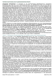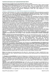 Verfahrenshinweise der Ausländerbehörde Berlin Krankenversicherungsschutzes für Beschäftigte, ggf. die Verpflichtung zum erfolgreichen Besuch eines Integrationskurses gem. § 44 Abs. 1 Nr. 3, die Verpflichtung der Erziehungsberechtigten und der aufenthaltsrechtlich Verfahrensfähigen, den durchgehenden Besuch einer Schule sowie ggf. das Bemühen um Aufnahme bzw. Fortsetzung einer angemessenen Ausbildung der Kinder sicherzustellen, die Verpflichtung der Erziehungsberechtigten, den Besuch einer Kindertagesstätte für alle Kinder, die das zweite Lebensjahr zum Zeitpunkt der Erteilung der Aufenthaltserlaubnis vollendet haben bzw. während der Gültigkeit der Aufenthaltserlaubnisse vollenden, ohne schulpflichtig zu sein, sicherzustellen. Die Möglichkeit für alle Kinder ab Vollendung des zweiten Lebensjahres, einen Kindergarten zu besuchen, ergibt sich aus dem Schreiben der Senatsverwaltung für Inneres und Sport vom 04.12.2006, namentlich aus dem Verweis auf § 4 Abs. 3 des Kindertagesbetreuungsreformgesetzes. Dort heißt es: „Für Kinder, die das zweite Lebensjahr vollendet haben, liegt regelmäßig ein Bedarf zumindest für eine Halbtagsförderung in einer Tageseinrichtung vor, wenn die Förderung für die sprachliche Integration erforderlich ist.“ Die Erfüllung eines Anspruchs oder Förderungsbedarfs setzt allerdings einen vorherigen Antrag und die Feststellung nach § 7 des Kindertagesbetreuungsreformgesetzes voraus. Zuständig sind die Jugendämter der Bezirke. Es ist davon auszugehen, dass diese Voraussetzungen des § 4 Abs. 3 des Kindertagesbereuungsreformgesetzes von den Betroffenen stets erfüllt werden. Eine Betreuung durch Tagesmütter ist nicht ausreichend, da nicht sichergestellt ist, dass damit die integrationspolitische Zielsetzung der Vereinbarung erfüllt wird. Bei Familien sind alle Mitglieder in die gemeinsame Integrationsvereinbarung aufzunehmen. Diese ist dann von allen aufenthaltsrechtlich verfahrensfähigen Familienmitgliedern zu unterzeichnen. Alle Unterzeichner erhalten eine Durchschrift der Vereinbarung und sollen den Erhalt quittieren. Bei rechtsanwaltlich Vertretenen ist in jedem Fall der Rechtsanwalt einzubeziehen. Volljährige Kinder unterzeichnen eine eigene Integrationsvereinbarung. Das Integrationsgespräch und die Vorbereitung der Vereinbarung erfolgt in gesonderten Räumlichkeiten nach Terminvereinbarung. Die Einladung ergeht im Falle anwaltlicher Vertretung über den Rechtsanwalt. In dem Schreiben wird auf den möglichen Inhalt der Integrationsvereinbarung sowie darauf hingewiesen, dass alle Betroffenen erscheinen müssen und – so notwendig – für einen Sprachmittler zu sorgen ist. Die Verlängerung setzt regelmäßig voraus, dass alle sich aus der Integrationsvereinbarung ergebenden Verpflichtungen - auch von den anderen Familienmitgliedern – unter Berücksichtigung der Verlängerungsregelungen der §§ 104a, 104b erfüllt sind. Ist dies nicht der Fall, ist in Hinblick auf die integrationspolitische Zielsetzung der Regelung von einem atypischen Fall auszugehen und das von §104a Abs. 5 Satz 2 bzw. § 104 a Abs. 6 eröffnete Ermessen zu Lasten der Betroffenen auszuüben. Beispielhafte Muster für eine Integrationsvereinbarung finden sich am Ende dieser Weisung. 104a.4.2. Nebenbestimmungen Die Aufenthaltserlaubnis nach § 104a bzw. § 23 Abs.1 i.V.m. § 104a berechtigt in allen vier Fallgruppen unbeschränkt zur Erwerbstätigkeit. Sie ist mit dem Eintrag "Erwerbstätigkeit gestattet." zu versehen. Die bei der Ersterteilung verfügte auflösende Bedingung "Erlischt mit dem Bezug von Leistungen nach dem SGB XII." ist in Verlängerungsfällen nicht mehr zu verfügen. Weiter wird in allen Fällen die Auflage "Wohnsitznahme im Land Berlin erforderlich“ verfügt (vgl. hierzu im Einzelnen A.12.2.2.) 104a.5. Ersterteilungsdauer § 104a Abs. 5 Satz 1 regelt die Dauer der Aufenthaltserlaubnis bei der Ersterteilung für alle vier Fallgruppen des §104a bzw. § 23 Abs. 1 i.V.m. § 104a. Aus verwaltungspraktischen Gründen war eine Erteilung aller Aufenthaltserlaubnisse bis zum 31.12.2009 wie vom Gesetzgeber vorgesehen unmöglich. So hätte am 01.01.2010 über eine Vielzahl von Verlängerungsanträgen gleichzeitig entschieden werden müssen. Entsprechend den zeitlichen Vorstellungen des Gesetzgebers war die ersterteilte Aufenthaltserlaubnis anknüpfend an das Inkrafttreten der gesetzlichen Bleiberechtsregelung am 01.09.2007 daher in allen vier Fallvarianten des § 104a regelmäßig für zunächst 2 Jahre und vier Monate bzw. 28 Monate zu erteilen. Eine Ausnahme galt nur dann, wenn zum Zeitpunkt der Ersterteilung einer Aufenthaltserlaubnis nach § 104a Abs. 1 Satz 1 (Aufenthaltserlaubnis auf Probe) oder einer Aufenthaltserlaubnis nach § 23 Abs. 1 Satz 1 i.V.m. § 104a Abs. 1 Satz 2 (Altfallregelung) noch keine hinreichenden deutschen Sprachkenntnisse im Sinne von § 104 Abs. 1 Satz 1 Nr. 2 vorlagen, bzw. trotz entsprechender dokumentierte Bemühungen noch kein Pass vorgelegt werden konnte, dann erfolgte die Ersterteilung nur für einen kürzeren Zeitraum (1 Jahr bzw. 6 Monate). 104a.5.2. Verlängerung 104a.5.2.1 . Aufenthaltserlaubnisse, die vor dem Inkrafttreten der gesetzlichen Bleiberechtsregelung auf der Grundlage von § 23 Abs. 1 i.V.m. dem IMK-Beschluss vom 17.11.2006 erteilt worden sind, liefen in der Regel zwischen dem 02.01.2009 Dieses PDF wurde erstellt am: 11.12.2017 Seite 512 von 794