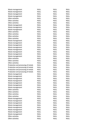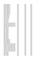 Waste management NULL NULL NULL Waste management NULL NULL NULL Waste management NULL NULL NULL Waste management NULL NULL NULL Other activities NULL NULL NULL Other activities NULL NULL NULL Other activities NULL NULL NULL Waste management NULL NULL NULL Waste management NULL NULL NULL Waste management NULL NULL NULL Other activities NULL NULL NULL Other activities NULL NULL NULL Other activities NULL NULL NULL Other activities NULL NULL NULL Waste management NULL NULL NULL Waste management NULL NULL NULL Waste management NULL NULL NULL Waste management NULL NULL NULL Waste management NULL NULL NULL Waste management NULL NULL NULL Waste management NULL NULL NULL Waste management NULL NULL NULL Other activities NULL NULL NULL Other activities NULL NULL NULL Other activities NULL NULL NULL Production and processing of metals NULL NULL NULL Production and processing of metals NULL NULL NULL Production and processing of metals NULL NULL NULL Production and processing of metals NULL NULL NULL Waste management NULL NULL NULL Waste management NULL NULL NULL Waste management NULL NULL NULL Waste management NULL NULL NULL Waste management NULL NULL NULL Waste management NULL NULL NULL Waste management NULL NULL NULL Other activities NULL NULL NULL Other activities NULL NULL NULL Other activities NULL NULL NULL Other activities NULL NULL NULL Waste management NULL NULL NULL Waste management NULL NULL NULL Waste management NULL NULL NULL Waste management NULL NULL NULL Waste management NULL NULL NULL Waste management NULL NULL NULL Waste management NULL NULL NULL Waste management NULL NULL NULL Other activities NULL NULL NULL Other activities NULL NULL NULL