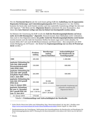 Wissenschaftliche Dienste Sachstand Seite 9 WD 2 - 3000 - 032/18 5. Fazit Seit Ende des Kalten Krieges nahmen die Friedensumfänge und die personelle Aufwuchsfähig- keit der Bundeswehr schrittweise ab (siehe Tabelle 1). Die Reduzierung der aktiven Truppen- stärke hielt bis zum Jahr 2015 an, als die Bundeswehr mit etwa 177.000 Soldatinnen und Solda- ten den geringsten Umfang ihrer Geschichte hatte. Seit diesem Zeitpunkt hat das Bundesministe- rium der Verteidigung (BMVg) vor dem Hintergrund sicherheitspolitischer Veränderungen (u.a. die russische Aggressionspolitik im Osten Europas) im Rahmen der sogenannten „Trendwende Personal“ Maßnahmen eingeleitet, die aktive Truppenstärke zunächst zu stabilisieren und diese dann bis zum Jahr 2024 auf 198.000 Soldatinnen und Soldaten (inkl. 3.500 Reservistendienst Leistende) 19 anzuheben. Die personelle Aufwuchsfähigkeit der Bundeswehr nahm hingegen bis heute weiter ab. Gegen- wärtig könnten kurzfristig nur noch 28.000 der insgesamt 61.000 Beorderungsdienstposten be- setzt werden. Ein umfassender Aufwuchs der Bundeswehr durch Aktivierung der Allgemeinen Reserve ist im Moment nur langfristig möglich, zumal diese gegenwärtig nicht ausgeplant ist (keine Mobilmachungspläne) und für sie zunächst gar kein Material zur Verfügung stünde. Die neuesten Planungen im Bundesministerium der Verteidigung zeigen, dass der Aufwuchs- fähigkeit der Bundeswehr wieder eine größere Bedeutung beigemessen wird. Schrittweise soll zunächst bis 2027 eine umfassende Befähigung der deutschen Streitkräfte zur Bündnis- und Landesverteidigung und bis 2031 eine aufgabenorientierte Ausstattung aller aktiven und teil-/ nicht-aktiven Einheiten erfolgen. 20 *** 19 Vgl. Im Visier – Sonderausgabe Arbeitgeber Bundeswehr, Ausgabe 5, Sommer 2017, Hrsg.: Bundesministerium der Verteidigung / Presse- und Informationsstab, S. 25. Abrufbar unter: https://www.bmvg.de/resource/blob/ 12488/a030ee76e0fe9be26628593b3866b829/b-06-01-01-download-2-trendwende-personal-data.pdf (letzter Zugriff: 22. März 2018). 20 Bundeswehr-Pläne: Heer soll drei volle Divisionen bekommen. Hrsg.: Deutscher Bundeswehr-Verband, 19. April 2017. Abrufbar unter: https://www.dbwv.de/aktuelle-themen/politik-verband/beitrag/news/bundeswehr-plaene- heer-soll-drei-volle-divisionen-bekommen/ (letzter Zugriff: 22. März 2018).