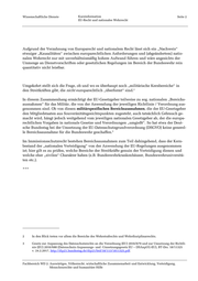 Wissenschaftliche Dienste Kurzinformation Seite 2 EU-Recht und nationales Wehrrecht Aufgrund der Verzahnung von Europarecht und nationalem Recht lässt sich ein „Nachweis“ etwaiger „Kausalitäten“ zwischen europarechtlichen Anforderungen und (abgeändertem) natio- nalen Wehrrecht nur mit unverhältnismäßig hohem Aufwand führen und wäre angesichts der Unmenge an Dienstvorschriften oder gesetzlichen Regelungen im Bereich der Bundeswehr rein quantitativ nicht leistbar. Umgekehrt stellt sich die Frage, ob und wo es überhaupt noch „militärische Kernbereiche“ in den Streitkräften gibt, die nicht europarechtlich „überformt“ sind. 2 In diesem Zusammenhang ermächtigt der EU-Gesetzgeber teilweise zu sog. nationalen „Bereichs- ausnahmen“ für das Militär, die von der Anwendung der jeweiligen Richtlinie / Verordnung aus- genommen sind. Ob von diesen militärspezifischen Bereichsausnahmen, die der EU-Gesetzgeber den Mitgliedstaaten aus Souveränitätsgesichtspunkten zugesteht, auch tatsächlich Gebrauch ge- macht wird, hängt jedoch weitgehend vom jeweiligen nationalen Gesetzgeber ab, der die europa- rechtlichen Vorgaben in nationale Gesetze und Verordnungen „umgießt“. So hat etwa der Deut- sche Bundestag bei der Umsetzung der EU-Datenschutzgrundverordnung (DSGVO) keine generel- le Bereichsausnahme für die Bundeswehr geschaffen. 3 Im Immissionsschutzrecht bestehen Bereichsausnahmen zum Teil dahingehend, dass der Kern- bestand der „nationalen Verteidigung“ von der Anwendung der EU-Regelungen ausgenommen ist; hier gilt es zu prüfen, welche Bereiche der Streitkräfte genuin der Verteidigung dienen und welche eher „zivilen“ Charakter haben (z.B. Bundeswehrkrankenhäuser, Bundeswehruniversitä- ten etc.). *** 2 In den Blick treten vor allem die Bereiche des Wehrstrafrechts und Wehrdisziplinarrechts. 3 Gesetz zur Anpassung des Datenschutzrechts an die Verordnung (EU) 2016/679 und zur Umsetzung der Richtli- nie (EU) 2016/680 (Datenschutz-Anpassungs- und -Umsetzungsgesetz EU – DSAnpUG-EU), BT-Drs. 18/11325 v. 24.2.2017, http://dip21.bundestag.de/dip21/btd/18/113/1811325.pdf. Fachbereich WD 2: Auswärtiges, Völkerrecht, wirtschaftliche Zusammenarbeit und Entwicklung, Verteidigung, Menschenrechte und humanitäre Hilfe