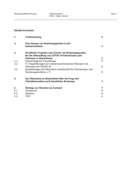 Wissenschaftliche Dienste Dokumentation Seite 3 WD 9 - 3000 - 033/20 Inhaltsverzeichnis 1. Vorbemerkung 4 2. Zum Einsatz von Beatmungsgeräten in der Intensivmedizin 4 3. Rechtliche Vorgaben zum Einsatz von Beatmungsgeräten bei der Behandlung von COVID-19-Patientinnen und - Patienten in Deutschland 5 3.1. IntensivRegister-Verordnung 5 3.2. S 1-Empfehlungen zur intensivmedizinischen Therapie von Patienten mit COVID-19 6 3.3. Empfehlungen der Deutschen Gesellschaft für Pneumologie und Beatmungsmedizin e. V. 6 4. Zur Diskussion in Deutschland über die Frage des Überlebensrisikos nach künstlicher Beatmung 7 5. Beiträge zur Situation im Ausland 7 5.1. Frankreich 8 5.2. Spanien 8 5.3. USA 8