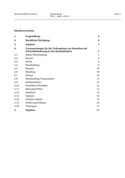Wissenschaftliche Dienste Ausarbeitung Seite 3 WD 3 – 3000 – 057/12 Inhaltsverzeichnis 1. Fragestellung 4 2. Rechtliche Würdigung 4 3. Ergebnis 7 4. Voraussetzungen für die Verbeamtung von Menschen mit Schwerbehinderung in den Bundesländern 7 4.1. Baden-Württemberg 7 4.2. Bayern 8 4.3. Berlin 9 4.4. Brandenburg 9 4.5. Bremen 10 4.6. Hamburg 10 4.7. Hessen 10 4.8. Mecklenburg-Vorpommern 11 4.9. Niedersachsen 11 4.10. Nordrhein-Westfalen 12 4.11. Rheinland-Pfalz 13 4.12. Saarland 14 4.13. Sachsen 14 4.14. Sachsen-Anhalt 15 4.15. Schleswig-Holstein 16 4.16. Thüringen 17 5. Ergebnis 17