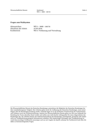Wissenschaftliche Dienste Sachstand Seite 2 WD 3 - 3000 - 146/16 Fragen zum Wahlsystem Aktenzeichen: WD 3 - 3000 - 146/16 Abschluss der Arbeit: 23.05.2016 Fachbereich: WD 3: Verfassung und Verwaltung Die Wissenschaftlichen Dienste des Deutschen Bundestages unterstützen die Mitglieder des Deutschen Bundestages bei ihrer mandatsbezogenen Tätigkeit. Ihre Arbeiten geben nicht die Auffassung des Deutschen Bundestages, eines seiner Organe oder der Bundestagsverwaltung wieder. Vielmehr liegen sie in der fachlichen Verantwortung der Verfasserinnen und Verfasser sowie der Fachbereichsleitung. Arbeiten der Wissenschaftlichen Dienste geben nur den zum Zeitpunkt der Erstellung des Textes aktuellen Stand wieder und stellen eine individuelle Auftragsarbeit für einen Abgeordneten des Bundestages dar. Die Arbeiten können der Geheimschutzordnung des Bundestages unterliegende, geschützte oder andere nicht zur Veröffentlichung geeignete Informationen enthalten. Eine beabsichtigte Weitergabe oder Veröffentlichung ist vorab dem jeweiligen Fachbereich anzuzeigen und nur mit Angabe der Quelle zulässig. Der Fachbereich berät über die dabei zu berücksichtigenden Fragen.
