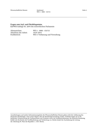 Wissenschaftliche Dienste Sachstand Seite 2 WD 3 - 3000 - 153/15 Fragen zum Asyl- und Flüchtlingsstatus EZPWD-Anfrage Nr. 2876 des schwedischen Parlaments Aktenzeichen: WD 3 - 3000 - 153/15 Abschluss der Arbeit: 10.07.2015 Fachbereich: WD 3: Verfassung und Verwaltung Ausarbeitungen und andere Informationsangebote der Wissenschaftlichen Dienste geben nicht die Auffassung des Deutschen Bundestages, eines seiner Organe oder der Bundestagsverwaltung wieder. Vielmehr liegen sie in der fachlichen Verantwortung der Verfasserinnen und Verfasser sowie der Fachbereichsleitung. Der Deutsche Bundestag behält sich die Rechte der Veröffentlichung und Verbreitung vor. Beides bedarf der Zustimmung der Leitung der Abteilung W, Platz der Republik 1, 11011 Berlin.