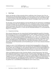 Fachbereich Europa Ausarbeitung Seite 4 PE 6 - 3000 - 124/14 1. Erste Frage Könnte man Betriebe im Wege nationalen Rechts verpflichten, beim Transport eines Tiers zur Schlachtung eine Bescheinigung beizufügen, aus der hervorgeht, ob das Tier trächtig ist und ggf. in welchem Stadium? Oder stehen Regelungen des nationalen Rechts oder des EU-Rechts dage- gen (z.B. wenn sich der Betrieb darauf beruft, die Frage der Trächtigkeit seiner Tiere sei ein Be- triebsgeheimnis)? Für die Frage, ob eine nationale Regelung, durch die Betriebe für den Tiertransport zur Beifügung einer Bescheinigung über die Trächtigkeit eines Tieres verpflichtet werden, mit dem Unionsrecht vereinbar ist, ist die unionsrechtliche Determinierung der mitgliedstaatlichen Handlungsspiel- räume entscheidend. Dies richtet sich nach der Kompetenzverteilung zwischen Union und Mit- gliedstaaten in diesem Bereich (1.1.) sowie nach den sekundärrechtlichen (1.2.) und primärrecht- lichen (1.3.) Prämissen. 1.1. Kompetenzverteilung Eine nationale Regelung setzt eine entsprechende Handlungsmöglichkeit gemäß der Zuständig- keitsverteilung zwischen EU und den Mitgliedstaaten voraus. Hierbei ist insbesondere zwischen den ausschließlichen Unionszuständigkeiten (Art. 2 Abs. 1, Art. 3 AEUV) und den zwischen der Union und den Mitgliedstaaten geteilten Zuständigkeiten (Art. 2 Abs. 2, Art. 4 AEUV) zu unter- scheiden. Nur wenn der Regelungsgegenstand in den Bereich der geteilten Zuständigkeiten fällt bleiben die Mitgliedstaaten handlungsbefugt. Andernfalls darf nur die Union gem. Art. 2 Abs. 1, Art. 3 AEUV gesetzgeberisch tätig werden und verbindliche Rechtsakte erlassen und die Mit- gliedstaaten sind im Wesentlichen auf die Durchführung der von der Union erlassenen Rechtsak- te beschränkt. Fraglich ist somit, ob die Einführung einer nationalen Bescheinigungspflicht in Bezug auf die Gravidität von zu transportierenden Tieren zum Bereich der ausschließlichen Zuständigkeiten der EU gehört. Dies ist abhängig von dem konkreten Regelungsziel und dem Regelungsgehalt der Maßnahme. Ein konkreter Regelungsvorschlag liegt nicht vor, so dass für die Frage der Kompe- tenzgemäßheit einer Regelung vorliegend nur eine Einschätzung vorgenommen werden kann. Sofern eine Regelung primär auf den Tierschutz abstellt, ist darauf hinzuweisen, dass die EU keine allgemeine Kompetenz im Hinblick auf den Tierschutz besitzt. Regelungen, die ausschließ- lich Tierschutzaspekte verfolgen, liegen vielmehr in der Zuständigkeit der Mitgliedstaaten. Die 1 Vorgaben aus Art. 13 AEUV betreffend den Tierschutz entfalten lediglich eine Direktionskraft bei der Konkretisierung bzw. Durchführung spezieller Politikbereiche. Dementsprechend müssen sich dem Tierschutz dienende Maßnahmen auf eine der in Art. 13 AEUV beispielhaft aufgezähl- ten geteilten bzw. ausschließlichen Zuständigkeiten der EU stützen lassen. 1 Vgl. Streinz, in: Streinz, EUV/AEUV, 2. Auflage 2012, Art. 13 AEUV, Rn. 10 ff.