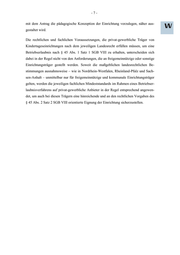 -7- mit dem Antrag die pädagogische Konzeption der Einrichtung vorzulegen, näher aus- gestaltet wird. Die rechtlichen und fachlichen Voraussetzungen, die privat-gewerbliche Träger von Kindertageseinrichtungen nach dem jeweiligen Landesrecht erfüllen müssen, um eine Betriebserlaubnis nach § 45 Abs. 1 Satz 1 SGB VIII zu erhalten, unterscheiden sich dabei in der Regel nicht von den Anforderungen, die an freigemeinnützige oder sonstige Einrichtungsträger gestellt werden. Soweit die maßgeblichen landesrechtlichen Be- stimmungen ausnahmsweise – wie in Nordrhein-Westfalen, Rheinland-Pfalz und Sach- sen-Anhalt – unmittelbar nur für freigemeinnützige und kommunale Einrichtungsträger gelten, werden die jeweiligen fachlichen Mindeststandards im Rahmen eines Betriebser- laubnisverfahrens auf privat-gewerbliche Anbieter in der Regel entsprechend angewen- det, um auch bei diesen Trägern eine hinreichende und an den rechtlichen Vorgaben des § 45 Abs. 2 Satz 2 SGB VIII orientierte Eignung der Einrichtung sicherzustellen.