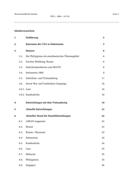 Wissenschaftliche Dienste Seite 3 WD 2 - 3000 – 157/18 Inhaltsverzeichnis 1. Einführung 5 2. Interessen der USA in Südostasien 5 3. Historie 6 3.1. Die Philippinen als amerikanisches Überseegebiet 6 3.2. Zweiter Weltkrieg: Burma 8 3.3. Indochinakonferenz und SEATO 8 3.4. Indonesien 1965 9 3.5. Indochina- und Vietnamkrieg 11 3.6. Secret War und Cambodian Campaign 16 3.6.1. Laos 16 3.6.2. Kambodscha 18 4. Entwicklungen seit dem Vietnamkrieg 19 5. Aktuelle Entwicklungen 21 6. Aktueller Stand der Handelsbeziehungen 22 6.1. ASEAN insgesamt 23 6.2. Brunei 23 6.3. Burma / Myanmar 23 6.4. Indonesien 24 6.5. Kambodscha 24 6.6. Laos 25 6.7. Malaysia 25 6.8. Philippinen 25 6.9. Singapur 26