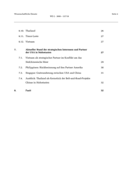Wissenschaftliche Dienste Seite 4 WD 2 - 3000 – 157/18 6.10. Thailand 26 6.11. Timor-Leste 27 6.12. Vietnam 27 7. Aktueller Stand der strategischen Interessen und Partner der USA in Südostasien 27 7.1. Vietnam als strategischer Partner im Konflikt um das Südchinesische Meer 29 7.2. Philippinen: Rückbesinnung auf den Partner Amerika 30 7.3. Singapur: Gratwanderung zwischen USA und China 31 7.4. Ausblick: Thailand als Kernstück der Belt-and-Road-Projekte Chinas in Südostasien 32 8. Fazit 32