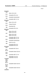 Drucksache 19/6676 – 302 – Deutscher Bundestag – 19. Wahlperiode Anlage 4 Handwaffen Gewehr 5,56 mm SB11A Handwaffen Gewehr 5,56 mm SB11C Handwaffen MP 9 mm SB14 Handwaffen Gewehr 5,56 mm Handwaffen Gewehr 5,56 mm SB16 Handwaffen Gewehr 5,56 mm Handwaffen Gewehr 5,56 mm SB16B Handwaffen Gewehr 5,56 mm Handwaffen Gewehr 5,56 mm SB8 Handwaffen MG 7,62 mm Handwaffen MG 7,62 mm SB9 Handwaffen Gewehr 5,56 mm SP Sprengmittel Sprengkörper Sprengmittel Sprengkörper 12.04.2018 SB1 Handwaffen Gewehr 5,56 mm SB11A Handwaffen Gewehr 5,56 mm SB11C Handwaffen MP 9 mm SB14 Handwaffen Gewehr 5,56 mm SB16 Handwaffen Gewehr 5,56 mm SB16B Handwaffen Gewehr 5,56 mm SB18 PAbwHdWa 60 mm HE SB8 Handwaffen Gewehr 5,56 mm SP Vernichten Mun HDv 183/100 13.04.2018 SB1 Handwaffen Gewehr 5,56 mm SB10 Handwaffen Gewehr 7,62 mm SB11A Handwaffen Gewehr 5,56 mm SB14 Handwaffen Gewehr 5,56 mm SB16B Handwaffen Gewehr 5,56 mm SP Vernichten Mun HDv 183/100 16.04.2018 SB1 Handwaffen Gewehr 5,56 mm SB11A Handwaffen Gewehr 5,56 mm 284