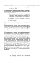 Drucksache 19/23097 –4– Deutscher Bundestag – 19. Wahlperiode c) zur Umsetzung der Biodiversitätsstrategie in Deutschland (vgl. SRU- Umweltgutachten 2008)? Die Bundesregierung hat unmittelbar nach Verabschiedung der nationalen Stra- tegie zur biologischen Vielfalt einen umfangreichen Umsetzungsprozess begon- nen und viele Maßnahmen realisiert. d) Wenn ja, welche konkreten Schritte zur Weiterentwicklung hat die Bundesregierung hier vorgenommen, und wie ist der aktuelle Grad der Zielerreichung in den oben genannten Punkten nach Auffassung der Bundesregierung zu bewerten (bitte getrennt nach Unterfragen beant- worten)? e) Wenn umgesetzt, wie bewertet die Bundesregierung die genannten In- strumente? f) Wenn nein, warum nicht? Die Fragen 3d–3f werden jeweils für die in der Antwort zu den Fragen 3a und 3c genannten Instrumente im Zusammenhang gemeinsam beantwortet. Zu 3a Umfangreiche Erkenntnisse werden aus dem im Nachgang zur Novelle 2017 laufenden Monitoring und dem anschließenden Bericht der Bundesregierung dazu an den Bundestag in 2021 erwartet. Mit den aus dem Bericht folgenden Erkenntnissen, auch einer etwaigen weiteren Ausweitung der Beteiligungsrech- te, wird sich die kommende Bundesregierung in der nächsten Legislaturperiode auseinandersetzen. Zu 3c Der Umsetzungsprozess der Nationalen Biodiversitätsstrategie umfasste kon- krete Maßnahmen und einen gesellschaftlichen Dialog mit den betroffenen Ak- teuren. Auskunft über die Umsetzung der Strategie ergeben die Rechenschafts- berichte der Bundesregierung zur Umsetzung der Strategie: „Gemeinsam für die biologische Vielfalt – Rechenschaftsbericht 2013 zur Umsetzung der Natio- nalen Strategie zur biologischen Vielfalt“ und „Biologische Vielfalt in Deutsch- land – Rechenschaftsbericht 2017 der Bundesregierung zur Umsetzung der Na- tionalen Strategie zur biologischen Vielfalt“. Ein weiterer Rechenschaftsbericht wird 2021 erscheinen. Dort finden sich auch Ausführungen zur Erreichung der Ziele der Nationalen Strategie. In der Nationalen Strategie findet sich auch ein Set von übergreifenden Indikatoren, mit deren Hilfe eine zusammenfassende Erfolgskontrolle vorgenommen werden soll. Das in der Strategie enthaltene In- dikatorenset wurde im Laufe der Jahre ergänzt und auf derzeit 19 Indikatoren in fünf Handlungsfeldern erweitert. Über die Entwicklung von Status und Trend der einzelnen Indikatoren wird in den Rechenschaftsberichten sowie im geson- dert erschienenen ausführlichen Indikatorenbericht 2014 zur Strategie berichtet. Die Bundesregierung bewertet die Nationale Strategie positiv – sie hat die Maßnahmen für den Schutz und die nachhaltige Nutzung der biologischen Viel- falt fokussiert und hat sich zugleich als ein wichtiges Kommunikationsinstru- ment erwiesen. 4. Hat die Bundesregierung die SRU-Empfehlungen zum Schutz der Biodi- versität durch a) Einführung einer Pestizidabgabe und b) einer Stickstoffabgabe umgesetzt, bzw. plant die Bundesregierung solche Abgaben (vgl. SRU-Umweltgutachten 2008 und 2016)?