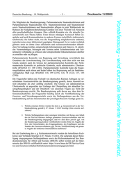 Deutscher Bundestag – 19. Wahlperiode –3– Drucksache 19/29930 Vorabfassung - wird durch die lektorierte Version ersetzt. Die Mitglieder der Bundesregierung, Parlamentarische Staatssekretärinnen und Parlamentarische Staatssekretäre bzw. Staatsministerinnen und Staatsminister sowie Staatssekretärinnen und Staatssekretäre pflegen in jeder Wahlperiode im Rahmen der Aufgabenwahrnehmung Kontakte mit einer Vielzahl von Akteuren aller gesellschaftlichen Gruppen. Dies schließt Kontakte ein, die aktuelle Ge- setzentwürfe zum Thema haben. Unter diesen ständigen Austausch fallen Ge- spräche und auch Kommunikation in anderen Formen (schriftlich, elektronisch, telefonisch). Sie haben nicht, wie die Fragestellung möglicherweise andeutet, typischerweise einen lobbyistisch geprägten Hintergrund. Es ist weder rechtlich geboten noch im Sinne einer effizienten und ressourcenschonenden öffentli- chen Verwaltung leistbar, entsprechende Informationen und Daten (z. B. sämtli- che Veranstaltungen, Sitzungen und Termine nebst Teilnehmerinnen und Teil- nehmern) vollständig zu erfassen oder entsprechende Dokumentationen darüber zu erstellen oder zu pflegen. Parlamentarische Kontrolle von Regierung und Verwaltung verwirklicht den Grundsatz der Gewaltenteilung. Die Gewaltenteilung stellt aber nicht nur den Grund, sondern auch die Grenze der parlamentarischen Kontrolle dar. Parla- mentarische Kontrolle ist politische Kontrolle, nicht administrative Überkon- trolle (BVerfGE 67, 100 (140)). Parlamentarische Kontrolle kann die Regie- rungsfunktion auch stören und bedarf daher der Begrenzung auf ein funktions- verträgliches Maß (vgl. BVerfGE 110, 199 (219); 124, 78 (122); 137, 185 (250)). Die Fragesteller haben eine Vielzahl von identischen Kleinen Anfragen zu ver- schiedenen Gesetzentwürfen der Bundesregierung gestellt, deren Auswahl so- weit erkennbar als eher zufällig erscheint. Die Grenze zur administrativen Überkontrolle ist angesichts des Umfangs der Überprüfung der aktuellen Ge- setzgebungstätigkeit und der Detailtiefe von einzelnen Fragen aus Sicht der Bundesregierung erreicht. Die Bundesregierung geht davon aus, dass dem In- formationsbedürfnis der Fragesteller künftig durch die Veröffentlichung der Gesetzes- und Verordnungsentwürfe sowie der Stellungnahmen aus der Ver- bändeanhörung auf den Internetseiten der jeweiligen Ressorts Genüge getan ist. 1. Welche externen Dritten wurden bei dem o. g. Gesetzentwurf in der Ver- bändeanhörung gemäß § 47 Absatz 3 GGO beteiligt (bitte einzeln auf- zählen)? 2. Welche Stellungnahmen oder sonstigen Schreiben mit Bezug zum Inhalt des im Titel der Kleinen Anfrage genannten Gesetzesvorhabens sind bei der Bundesregierung eingegangen, und wo sind diese jeweils ggf. von der Bundesregierung konkret veröffentlicht worden (bitte mit Angabe der bzw. des Einreichenden; des Eingangsdatums; des Empfängers und des Standes des Gesetzesvorhabens; ggf. Ort der Veröffentlichung mit genau- er Angabe der konkreten Internetadresse auflisten)? Bei der Erarbeitung des o. g. Referentenentwurfs wurden die betroffenen Fach- kreise und Verbände beteiligt (§ 47 Absatz 3 GGO). Die aufgrund dieser Betei- ligung eingegangenen Stellungnahmen sowie der Referentenentwurf des Bun- desministeriums für Arbeit und Soziales (BMAS) selbst werden auf der Inter- netseite des BMAS veröffentlicht unter: https://www.bmas.de/DE/Service/Gese tze-und-Gesetzesvorhaben/betriebsraetemodernisierungsgesetz.html.