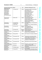 Drucksache 19/29930 –8– Deutscher Bundestag – 19. Wahlperiode Vorabfassung - wird durch die lektorierte Version ersetzt. Vertreter/Vertreterin der Datum Ort Teilnehmer/Teilnehmerin extern Bundesregierung Bundesminister 15. Februar 2021 Berlin Vorsitzende der DGB-Gewerkschaften Hubertus Heil Guido Zeitler, NGG Staatssekretärin Oliver Malchow, GdP Leonie Gebers Michael Vassiliadis, IG BCE Staatssekretär Jörg Hofmann, IG Metall Björn Böhning Frank Werneke, verdi Staatssekretär Robert Feiger, IG BAU Rolf Schmachtenberg Klaus Dieter Hommel, EVG Marlis Tepe, GEW Rainer Hoffmann, DGB Bundesminister 09. März 2021 Berlin Alexander Schweitzer, MdL Hubertus Heil Thomas Hitschler, MdB Dietmar Muscheid, Vorsitzender DGB Rheinland-Pfalz/Saarland Betriebs- und Personalräte aus Rheinland-Pfalz Staatssekretär 27. August 2019 Berlin Konrad Klingenburg, Vorstandssekretär Björn Böhning 30. Oktober 2019 beim DGB 8. Januar 2020 Steffen Kampeter, Hauptgeschäftsführer der BDA. Staatssekretär 18. Februar 2021 Videokon- Micha Klapp, DGB Björn Böhning ferenz Alexander Bercht, IGBCE Nancy Böhning, IG Metall Markus Fuss, verdi Staatssekretär 22. Februar 2021 Videokon- Steffen Kampeter (BDA) Björn Böhning ferenz Roland Wolf (BDA) Parlamentarische Staats- 27. September 2018 Berlin Rechtsanwältin Dr. Sandra Birte Carlson, sekretärin Manske & Partner Rechtsanwälte Anette Kramme Parlamentarische Staats- 30. Januar 2020 Berlin DAV, Deutscher Anwaltstag, Teilnehmer sekretärin Anette Kramme Parlamentarische Staats- 09. September 2020 Berlin Videokonferenz des Institutes für Be- sekretärin triebsberatung CAIDAO, Betriebsräte aus Anette Kramme diversen größeren Unternehmen Parlamentarische Staats- 10. Dezember 2020 Berlin IG Metall, Diskussionsveranstaltung, sekretärin Teilnehmer der Videokonferenz Anette Kramme Parlamentarische Staats- 10. Dezember 2020 Berlin Betriebsräte der Firma Thyssen Krupp sekretärin Anette Kramme Parlamentarische Staats- 4. Mai 2018 Wülfrath 40 Betriebs- und Personalräte aus dem sekretärin Kerstin Griese Landkreis Mettmann, NRW Bundesminister 6. Mai 2019 Berlin Betriebsratsvorsitzende der DAX 30 Olaf Scholz Unternehmen Bundesminister 1. Dezember 2020 Potsdam Telefonat mit den Vorsitzenden der DGB- Olaf Scholz Gewerkschaften Bundesminister 13. Januar 2021 Berlin Reiner Hoffmann, Vorsitzender und die Olaf Scholz Mitglieder des Bundesvorstands des DGB