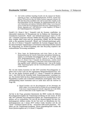 Deutscher Bundestag – 19. Wahlperiode –5– Drucksache 19/21641 b) Entsprechen die in Frage 9a genannten Recyclingquoten der Antwort zu Frage 10 auf Bundestagsdrucksache 19/20792, und wenn ja, wieso wurde die Frage dann am 2. Juli 2020 mit der Aussage, dass die Daten noch nicht vorlägen, beantwortet? Da sich die in der Antwort zu 9a genannten Recyclingquoten lediglich auf die gesetzlichen Vorgaben nach der früheren Verpackungsverordnung und dem Ver- packungsgesetz beziehen, handelt es sich nicht um die tatsächlichen aktuellen Recyclingquoten der dualen Systeme. Die Frage 10 auf Bundestagsdrucksache 19/20175 wurde insofern korrekt beantwortet. c) Wann lagen dem BMU die unter https://www.bmu.de/faq/wie-werden- die-recyclingquoten-durch-das-neue-verpackungsgesetz-erhoeht/ (abgerufen am 3. Juli 2020) angegebenen Daten vor? Die in der Antwort zu 9a genannten gesetzlichen Recyclingquotenvorgaben lie- ßen sich der Nummer 1 des Anhangs I zur Verpackungsverordnung entnehmen und sind im § 16 Absatz 2 VerpackG enthalten. d) Wie lange dauert die Auswertung durch die beiden Meldestellen (Zen- trale Stelle Verpackungsregister, UBA) nach Kenntnis der Bundes- regierung? Die Einhaltung der Recyclingquoten gemäß § 16 Absatz 2 VerpackG ergibt sich in erster Linie aus den Mengenstromnachweisen nach § 17 VerpackG, die nur bei der Zentralen Stelle Verpackungsregister vorzulegen sind. Aus den Be- richten nach § 21 Absatz 2 VerpackG ergeben sich unter anderem die Anteile der beteiligten Verpackungen je Materialart, die einem hochwertigen Recycling bzw. einer hochwertigen werkstofflichen Verwertung zugeführt wurden. Nach Kenntnis der Bundesregierung sind die Zentrale Stelle und das Umweltbundes- amt derzeit noch mit der Plausibilitätsprüfung der zum 1. Juni 2020 vorzu- legenden Berichte befasst. Die Prüfungsdauer richtet sich nach den Inhalten der Berichte und der sich im Rahmen der Plausibilisierung ergebenden Feststellun- gen. e) Wieso gibt es zwei unterschiedliche Meldestellen, und welche einzel- nen Aufgaben werden von welcher der beiden Stellen mit welcher Be- gründung übernommen? Die Mengenstromnachweise nach § 17 VerpackG sind ausschließlich der Zen- tralen Stelle Verpackungsregister vorzulegen und werden von dieser auf Plausi- bilität geprüft. Demgegenüber hat jedes duale System sowohl der Zentralen Stelle als auch dem Umweltbundesamt gegenüber zu berichten, wie es die Vor- gaben nach § 21 Absatz 1 VerpackG umsetzt. Die Zentrale Stelle prüft die Be- richte auf Plausibilität und erteilt dem jeweiligen System die Erlaubnis zur Ver- öffentlichung des Berichts. Das Umweltbundesamt gibt als wissenschaftliche Fachbehörde das Einvernehmen zum Prüfergebnis der Zentralen Stelle, um die umweltfachliche Qualität wissenschaftlich abzusichern. Daher müssen die Be- richte beiden Stellen vorliegen. Die Abgabe bei beiden Stellen dient der Be- schleunigung des Verfahrens und stellt keinen signifikanten Mehraufwand dar, da die Berichte von den dualen Systemen in der Regel elektronisch übermittelt werden.