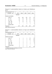 Drucksache 19/6325 – 12 – Deutscher Bundestag – 19. Wahlperiode Übersicht 10: Landwirtschaftliche Betriebe mit Schafen nach Größenklassen der LF Betriebsgruppe/LF von … bis unter … ha 1999 2003 2007 2010 2016 Saarland Betriebe mit Schafen unter 10 163 146 126 59 55 10 – 50 66 59 60 56 51 50 – 100 16 13 17 17 18 100 – 200 9 14 17 13 9 200 – 500 3 - 2 3 4 500 und mehr - - - - - Insgesamt 257 232 222 148 137 Quelle: Statistisches Bundesamt Übersicht 11: Landwirtschaftliche Betriebe mit Ziegen nach Größenklassen der LF Betriebsgruppe/LF von … bis unter … ha 1999 2003 2007 2010 2016 Saarland Betriebe mit Ziegen unter 10 x x x 14 14 10 – 50 x x x 32 25 50 – 100 x x x 7 10 100 – 200 x x x 7 8 200 – 500 x x x 3 3 500 und mehr x x x - - Insgesamt x x x 63 60 x = Zahlenwert liegt nicht vor (Erhebung erst seit 2010). Quelle: Statistisches Bundesamt