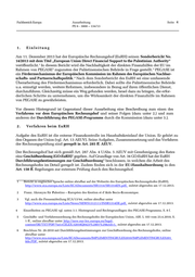 Fachbereich Europa Ausarbeitung Seite 6 PE 6 - 3000 – 134/13 glieder als berichterstattende Mitglieder. In Art. 37 ff. der Durchführungsbestimmungen finden sich Vorschriften zur Wahrnehmung der Aufgaben des Rechnungshofes. Nach erfolgter Prüfung vor Ort bzw. der übersandten Rechnungsunterlagen durch die Prüfungsteams wird vom Be- 13 richterstatter ein Entwurf der Bemerkungen in Form eines Sonderberichts erstellt, der den An- forderungen des Art. 57 der Durchführungsbestimmungen entsprechen muss. Nach der Behandlung des Entwurfs durch die Kammer beschließt diese über die Weiterbehandlung des vorgelegten Entwurfes. In Betracht kommen die Schließung der Akte, die Verlängerung der Prüfungsphase oder ein Beschluss, das Verfahren durch die Vorlage vorläufiger Bemerkungen im Hinblick auf die Aufnahme in den Jahresbericht oder die Erstellung eines Sonderberichts fortzusetzen. Nachdem solche vorläufigen Bemerkungen mangels eines Antrages auf weitere Behandlung i.S.d. Art. 59 Abs. 2 der Durchführungsbestimmungen durch andere Rechnungshofmitglieder endgültig geworden sind, werden sie den betroffenen Organen und Einrichtungen übermittelt (Art. 59 Abs. 3 der Durchführungsbestimmungen). Dies markiert den Beginn des kontradiktori- schen Verfahrens, in welchem die betroffenen (d.h. überprüften) Organe Antworten auf den Prüfberichtsentwurf übermitteln können. Gemäß Art. 163 der EU-Haushaltsordnung leitet das 14 betroffene Organ binnen einer Frist von zweieinhalb Monaten seine Antworten in Bezug auf die übermittelten Bemerkungen dem Rechnungshof zu. Innerhalb eines weiteren Monats nach Zuleitung der Antworten erfolgt die Annahme des endgül- tigen Wortlauts des Sonderberichts. Die Einzelheiten zur Annahme in den Kammern sind in Art. 26 GO-EuRH und Art. 66 und 67 der Durchführungsbestimmungen geregelt. Danach nimmt eine Kammer die Beschlüsse mit der Mehrheit ihrer Mitglieder an. Im Fall der Stimmengleichheit gibt die Stimme des Doyen den 15 Ausschlag. Zur Teilnahme an den Kammersitzungen berechtigt sind alle Mitglieder des Rech- nungshofes. Im Anschluss müssen binnen 3 Tagen nach Annahme des Dokuments durch die Kammer alle Mitglieder des Rechnungshofes darüber unterrichtet werden. Diese haben dann die Möglichkeit, innerhalb von fünf Tagen ab ihrer Unterrichtung bei dem Präsidenten des Rech- nungshofes einen Antrag auf Behandlung des Dokuments und Beschlussfassung durch den Hof zu stellen. Wenn nicht mehr als fünf Rechnungshofmitglieder einen solchen Antrag stellen, wird die Annahme des Dokuments endgültig. Das betreffende Dokument wird dann dem Generalsek- retär zur Kenntnis gebracht. 13 Vgl. zu den Prüferteams Art. 76 und 77 der Durchführungsbestimmungen. Siehe auch Waldhoff, in: Calliess/Ruffert (Hrsg.), EUV/AEUV, 4. Auflage. Aufl. 2011, Art. 285 AEUV, Rn. 8. 14 Verordnung Nr. 966/2012 vom 25. Oktober 2012 über die Haushaltsordnung für den Gesamthaushaltsplan der Union und zur Aufhebung der Verordnung (EG, Euratom) Nr. 1605/2002 des Rates, online abrufbar unter http://eur-lex.europa.eu/LexUriServ/LexUriServ.do?uri=OJ:L:2012:298:0001:0096:DE:PDF, zuletzt abgerufen am 18.12.2013. 15 Der Doyen ist eine Art Vorsitzender der Kammer, welcher gemäß Art. 10 Abs. 4 GO-EuRH und Art. 14 der Durchführungsbestimmungen von den Mitgliedern der Kammer gewählt wird.