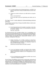 Drucksache 19/25947 –4– Deutscher Bundestag – 19. Wahlperiode 14. Zu welchen Konditionen hat die Bundesregierung bzw. das BMG die im Rahmen des Open-House-Vertrages beschafften Masken an Dritte weiter- gegeben? 15. Verlangte oder erhielt der Bund bzw. das BMG dafür eine Gegenleis- tung? Falls ja, worin bestand diese? In wie vielen Fällen wurde diese Gegenleistung auch erbracht, und von wem? Die Fragen 14 und 15 werden aufgrund des Sachzusammenhangs gemeinsam beantwortet. Die im Rahmen des Open-House-Vertrages beschafften Masken wurden unent- geltlich weitergegeben. 16. Hat das Bundesministerium für Gesundheit in den Fällen, in denen Mas- ken kostenfrei abgegeben wurden, der Generalzolldirektion entsprechen- de Nachweise vorgelegt? Wenn nein, warum nicht? Das Bundesministerium für Gesundheit befindet sich in regelmäßigem Aus- tausch mit der Generalzolldirektion bzw. den entsprechenden Hauptzollämtern. Das Bundesministerium für Gesundheit hat auf Anfragen seitens der Auftrag- nehmer in Bezug auf mangelfreie Ware entsprechende Schreiben an die er- suchenden Auftragnehmer übersendet. 17. Erhielten Dienstleister, die das BMG im Rahmen des Open-House- Verfahrens beraten haben – wie zum Beispiel Rae Wrede oder EY, sowie deren Mitarbeiterinnen und Mitarbeiter – die Möglichkeit, Einkäufe im Namen des BMG für Masken zu tätigen? Durften diese auch direkt Masken an das BMG verkaufen? Nein. 18. Ist die in der Information des BMG vom September 2020 auf Bundes- tags-Ausschussdrucksache 19(14)224 neu genannte Zahl von 738 Zu- schlägen im Open-House-Verfahren und 535 Vertragspartnern der letzt- gültige Stand? Ja. a) Wie viele Mitarbeiterinnen und Mitarbeiter des BMG waren mit dem Open-House-Verfahren beschäftigt? Mit der Planung, Durchführung und dem daraus resultierenden Arbeitsaufwand waren und sind bis dato bedarfsabhängig je nach Aufgabenstellung bis zu acht Mitarbeiterinnen und Mitarbeiter beschäftigt. Das Bundesministerium für Ge- sundheit wird bei der Durchführung und Abwicklung der Open-House-Verträge zusätzlich von der Betriebsführung von EY unterstützt.