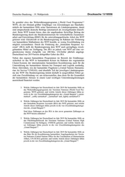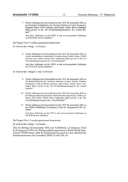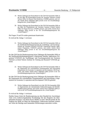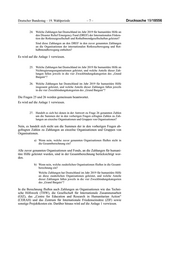 Deutscher Bundestag – 19. Wahlperiode –5– Drucksache 19/18556 12. Welche Zahlungen hat Deutschland im Jahr 2019 für humanitäre Hilfe an die Internationale Organisation für Migration (IOM) geleistet, und wel- che Anteile dieser Zahlungen fallen jeweils in die vier Zweckbindungs- kategorien des „Grand Bargain“? 13. Welche Zahlungen hat Deutschland im Jahr 2019 für humanitäre Hilfe an das Hilfswerk der Vereinten Nationen für Palästinaflüchtlinge im Nahen Osten (United Nations Relief and Works Agency for Palestine Refugees in the Near East, UNRWA) geleistet, und welche Anteile dieser Zah- lungen fallen jeweils in die vier Zweckbindungskategorien des „Grand Bargain“? 14. Welche Zahlungen hat Deutschland im Jahr 2019 für humanitäre Hilfe an den Dienst für Antiminenprogramme der Vereinten Nationen (United Nations Mine Action Service, UNMAS) geleistet, und welche Anteile dieser Zahlungen fallen jeweils in die vier Zweckbindungskategorien des „Grand Bargain“? 15. Welche Zahlungen hat Deutschland im Jahr 2019 für humanitäre Hilfe an die Ernährungs- und Landwirtschaftsorganisation der Vereinten Nationen (Food and Agriculture Organisation, FAO) geleistet, und welche Anteile dieser Zahlungen fallen jeweils in die vier Zweckbindungskategorien des „Grand Bargain“? 16. Welche Zahlungen hat Deutschland im Jahr 2019 für humanitäre Hilfe an das Entwicklungsprogramm der Vereinten Nationen (United Nations Development Programme, UNDP) geleistet, und welche Anteile dieser Zahlungen fallen jeweils in die vier Zweckbindungskategorien des „Grand Bargain“? Die Fragen 12 bis 16 werden gemeinsam beantwortet. Es wird auf die Anlage 1 verwiesen. 17. Welche Zahlungen hat Deutschland im Jahr 2019 für humanitäre Hilfe an den Bevölkerungsfonds der Vereinten Nationen (United Nations Popula- tion Fund, UNFPA) geleistet, und welche Anteile dieser Zahlungen fallen jeweils in die vier Zweckbindungskategorien des „Grand Bargain“? Im Jahr 2019 hat die Bundesregierung keine Zahlungen für humanitäre Hilfe an den Bevölkerungsfonds der Vereinten Nationen („United Nations Population Fund“/UNFPA) geleistet. 18. Welche Zahlungen hat Deutschland im Jahr 2019 für humanitäre Hilfe an das Programm für Frauen und Gleichstellungsfragen der Vereinten Nationen (United Nations Entity for Gender Equality and the Empower- ment of Women, UN-WOMEN) geleistet, und welche Anteile dieser Zahlungen fallen jeweils in die vier Zweckbindungskategorien des „Grand Bargain“? Im Jahr 2019 hat die Bundesregierung keine Zahlungen für humanitäre Hilfe an das Programm für Frauen und Gleichstellungsfragen der Vereinten Nationen („United Nations Entity for Gender Equality and the Empowerment of Wo- men“/UN-WOMEN) geleistet.