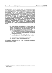 Drucksache 19/19467 –2– Deutscher Bundestag – 19. Wahlperiode Vorbemerkung der Bunderegierung Die Kleine Anfrage beinhaltet Fragen, die im Wesentlichen identisch sind mit den Fragen der Kleinen Anfragen der Fraktion DIE LINKE. vom 1. September 2008 (Bundestagsdrucksache 16/10182), vom 20. November 2008 (Bundes- tagsdrucksache 16/11009), vom 9. Dezember 2008 (Bundestagsdrucksache 16/11341), vom 22. April 2009 (Bundestagsdrucksache 16/12773), vom 27. Juli 2009 (Bundestagsdrucksache 16/13849), vom 12. November 2009 (Bundes- tagsdrucksache 17/26) vom 26. Februar 2010 (Bundestagsdrucksache 17/866), vom 3. Juni 2010 (Bundestagsdrucksache 17/1923), vom 18. August 2010 (Bundestagsdrucksache 17/2769), vom 8. November 2010 (Bundestagsdruck- sache 17/3640), vom 9. Februar 2011 (Bundestagsdrucksache 17/4729), vom 16. Mai 2011 (Bundestagsdrucksache 17/5830), vom 14. Juli 2011 (Bundes- tagsdrucksache 17/6598), vom 18. Oktober 2011 (Bundestagsdrucksache 17/7346) vom 26. Januar 2012 (Bundestagsdrucksache 17/8503), vom 20. April 2012 (Bundestagsdrucksache 17/9349), vom 25. Juli 2012 (Bundestagsdruck- sache 17/10384), vom 11. Oktober 2012 (Bundestagsdrucksache 17/10966), vom 2. Februar 2013 (Bundestagsdrucksache 17/12309), vom 23. April 2013 (Bundestagsdrucksache 17/13209), vom 30. Juli 2013 (Bundestagsdrucksache 17/14453), vom 22. November 2013 (Bundestagsdrucksache 18/84), vom 10. Februar 2014 (Bundestagsdrucksache 18/469), vom 16. April 2014 (Bun- destagsdrucksache 18/1189), vom 18. Juli 2014 (Bundestagsdrucksache 18/2148), vom 10. Oktober 2014 (Bundestagsdrucksache 18/2838), vom 22. Ja- nuar 2015 (Bundestagsdrucksache 18/3798), vom 26. Mai 2015 (Bundestags- drucksache 18/5014), vom 6. August 2015 (Bundestagsdrucksache 18/5721), vom 14. Oktober 2015 (Bundestagsdrucksache 18/6348), vom 26. Januar 2016 (Bundestagsdrucksache 18/7354), vom 22. April 2016 (Bundestagsdrucksache 18/8198), vom 5. August 2016 (Bundestagsdrucksache 18/9343), vom 11. No- vember 2016 (Bundestagsdrucksache 18/10159), vom 16. Februar 2017 (Bun- destagsdrucksache 18/11218), vom 30. Mai 2017 (Bundestagsdrucksache 18/12537), vom 3. August 2017 (Bundestagsdrucksache 18/13249), vom 3. No- vember 2017 (Bundestagsdrucksache 19/34), vom 27. April 2018 (Bundestags- drucksache 19/01912), vom 25. Juli 2018 (Bundestagsdrucksache 19/3577), vom 22. Oktober 2018 (Bundestagsdrucksache 19/5186) vom 6. Mai 2019 (Bundestagsdrucksache 19/9873), vom 6. August 2019 (Bundestagsdrucksache 19/12163) sowie vom 18. Dezember 2019 (Bundestagsdrucksache 19/161000). Stichtag für die Beantwortung ist der 31. Dezember 2019. Zur Vermeidung von Wiederholungen wird insoweit auf die Antworten der Bundesregierung vom 17. September 2008 (Bundestagsdrucksache 16/10252), vom 8. Dezember 2008 (Bundestagsdrucksache 16/11314), vom 5. Januar 2009 (Bundestagsdrucksache 16/11548), vom 11. Mai 2009 (Bundestagsdrucksache 16/12968), vom 14. August 2009 (Bundestagsdrucksache 16/13897), vom 27. November 2009 (Bundestagsdrucksache 17/84), vom 15. März 2010 (Bun- destagsdrucksache 17/1006), vom 22. Juni 2010 (Bundestagsdrucksache 17/2264), vom 3. September 2010 (Bundestagsdrucksache 17/2845), vom 25. November 2010 (Bundestagsdrucksache 17/3931), vom 28. Februar 2011 (Bundestagsdrucksache 17/4939), vom 1. Juni 2011 (Bundestagsdrucksache 17/6034), vom 29. Juli 2011 (Bundestagsdrucksache 17/6710), vom 8. Novem- ber 2011 (Bundestagsdrucksache 17/7617), vom 15. Februar 2012 (Bundestags- drucksache 17/8688), vom 8. Mai 2012 (Bundestagsdrucksache 17/9536), vom 10. August 2012 (Bundestagsdrucksache 17/10450), vom 29. Oktober 2012 (Bundestagsdrucksache 17/11251), vom 26. Februar 2013 (Bundestagsdruck- sache 17/12469), vom 10. Mai 2013 (Bundestagsdrucksache 13487), vom 14. August 2013 (Bundestagsdrucksache 17/14552) und vom 10. Dezember 2013 (Bundestagsdrucksache 18/154), vom 27. Februar 2014 (Bundestags- drucksache 18/676), vom 5. Mai 2014 (Bundestagsdrucksache 18/1321), vom 5. August 2014 (Bundestagsdrucksache 18/2286), vom 27. Oktober 2014 (Bun-