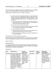 Deutscher Bundestag – 19. Wahlperiode – 17 – Drucksache 19/19467 2016 bis auf weiteres im Rahmen der Frontex JO Poseidon 2019 zur Wahrneh- mung von Überwachungsfahrten und Rettungsmaßnahmen eingesetzt. Darüber hinaus wird auf die Antwort zu Frage 6c verwiesen. 8. An welchen weiteren internationalen Einsätzen, auf der Grundlage des Prümer Vertrages oder entsprechender bilateraler Abkommen (ausge- nommen die sogenannte Nacheile) haben deutsche Polizisten – soweit die Bundesregierung Kenntnis davon hat – im vergangenen Quartal teil- genommen? a) Wann und wo fanden diese Einsätze jeweils statt (bitte angeben, in welchen Einheiten bzw. in welchen Stäben bzw. Dienststellen usw. die deutschen Polizeikräfte eingesetzt waren)? b) Was waren Anlass und Zweck der Einsätze? c) Wie viele deutsche Polizisten waren daran beteiligt (bitte Herkunft nach Länderpolizeien, Bundespolizei, BKA angeben)? d) Von wem ging das Ersuchen aus? e) Inwiefern haben die deutschen Polizisten von ihrer Befugnis zur An- wendung unmittelbaren Zwangs Gebrauch gemacht? f) Welche Einsatzmittel und Fahrzeuge aus deutschen Beständen wur- den jeweils mitgeführt? Die Fragen 8 bis 8f werden gemeinsam beantwortet. Polizeivollzugsbeamte aus Deutschland haben im 4. Quartal 2019 an folgenden weiteren internationalen Einsätzen im Sinne der Fragestellung teilgenommen: Zusatz zu Frage 8c: Bundeskriminalamt Im vergangenen Quartal haben keine Bediensteten des Bundeskriminalamtes an internationalen Einsätzen auf Grundlage des Prümer Vertrages oder entsprech- ender bilateraler Abkommen teilgenommen. Bundespolizei Land Anlass/Zweck Anzahl Ersuchen UZwG Führungs-/ DEU Kräfte Ja/Nein Einsatzmittel Frankreich Gemischte bilaterale Strei- Täglich im DEU/FRA Nein Die Beamten waren fen einschl. Zugstreifen Grenzgebiet + je grds. in Uniform zur Wahrnehmung bahn- mind. 1 mal pro eingesetzt. Die polizeilicher Aufgaben Monat auf den Ausstattung um- (Ziel: Erhöhung der Bahn- genannten Fern- fasst die dienstlich sicherheit und die Verbes- bahnstrecken; zugelassenen Aus- serung des Sicherheitsge- Streifenteams aus rüstungsgegenstän- fühls der Reisenden, Be- mind. 2 FRA + de einschl. Schuss- kämpfung grenzüber- mind. 2 DEU waffen. schreitender Kriminalität) PVB im DEU-FRA Grenzgebiet sowie auf den Fernbahn- strecken Paris – Stuttgart/ Frankfurt