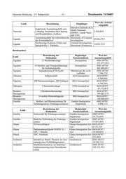 Deutscher Bundestag – 19. Wahlperiode – 45 – Drucksache 19/19467 Bezeichnung der Begünstigte Wert der Land Maßnahme Partnerbehörde Ausstattungshilfe Serbien 17 Kontroll- und Streifendienstfahr- Grenzpolizei SRB 0610 68707 / zeuge 169.830,00 € Tunesien 200 GPS-Geräte Nationalgarde 0610 68707 / 101.544,37 € Tunesien Ertüchtigung Werkstatt GN Maritime Garde Nationale Mari- 0501 68723 / Sfax -- Ausstattung mit Schwerpunkt time 12.471,63 € Werkzeug Bezeichnung der Begünstigte Wert der Land Maßnahme Partnerbehörde Ausstattungshilfe Tunesien Ertüchtigung Werkstatt GN Maritime Garde Nationale Mari- 0501 68723 / Sfax -- Zubehör Gabelstapler time 1.082,98 € Tunesien 15 Whiteboards mit Zubehör Grenzpolizei (DFE) 0501 68723 / 946,52 € Tunesien 50 Ausweislesegeräte Grenzpolizei (DFE) 0501 68723 / 88.032,00 € Tunesien 50 USB-Mikroskope Grenzpolizei (DFE) 0501 68723 / 2.350,85 € Tunesien 30 Urkundenprüfgeräte Grenzpolizei (DFE) 0501 68723 / 88.500,00 € Tunesien 2 Dokumentenprüfcenter Grenzpolizei (DFE) / 0501 68723 / BNFD 75.700,64 € Tunesien 10 Forensiklupen Grenzpolizei (DFE) 0501 68723 / 818,86 € Tunesien 10 Videolupen Grenzpolizei (DFE) 0501 68723 / 1.294,04 € Tunesien Mikroskopkamera Urkundenlabor BNFD 0501 68723 / 3.563,90 € Tunesien 20 Küchen/Gaskochstellen für Grenz- Nationalgarde 0501 68723 / posten GN 177.488,04 € Tunesien Werkzeug für fünf K-Werkstattwagen Nationalgarde / Garde 0501 68723 / Nationale Maritime 62.084,70 € Bezeichnung der Begünstigte Wert der Land Maßnahme Partnerbehörde Ausstattungshilfe Tunesien 1000 Erste-Hilfe-Kit-Mannausstattung Nationalgarde 0501 68723 / 119.049,83 € Tunesien Ballistische Schutzwesten – Seiten- Nationalgarde 0501 68723 / platten 162.000,00 € Tunesien Ausstattung Schulungsraum Oued Nationalgarde 0501 68723 / Zarga 18.158,50 € Tunesien Ballistische Schutzwesten Nationalgarde 6002 68703 / 833.136,00 € Tunesien Ertüchtigung Werkstattgebäude Sfax Garde Nationale Mari- 6002 68703 / inkl. Portalkran time 155.240,89 € Tunesien Schwimmpier Garde Nationale Mari- 6002 68703 / time 186.760,57 € Tunesien Ausstattung (Pallungen, Montagebö- Garde Nationale Mari- 6002 68703 / cke) time 9.870,72 €