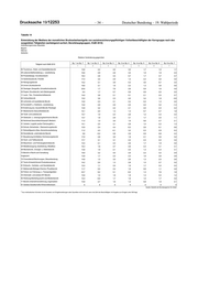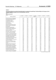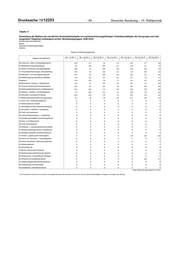 Drucksache 19/12253 – 32 – Deutscher Bundestag – 19. Wahlperiode Tabelle 13 Entwicklung der Mediane der monatlichen Bruttoarbeitsentgelte von sozialversicherungspflichtigen Vollzeitbeschäftigten der Kerngruppe nach den ausgeübten Tätigkeiten (aufsteigend sortiert, Berufshauptgruppen, KldB 2010) Anforderungsniveau Fachkraft Bayern Asylherkunftsstaaten (Top 8) Zeitreihe Relative Veränderung gegenüber Sp. 1 zu Sp. 7 Sp. 1 zu Sp. 2 Sp. 2 zu Sp. 3 Sp. 3 zu Sp. 4 Sp. 4 zu Sp. 5 Sp. 5 zu Sp. 6 Sp. 6 zu Sp. 7 Tätigkeit nach KldB 2010 1 1 1 1 1 1 1 2 3 4 5 6 7 1 1 1 1 1 1 Insgesamt 13,4 3,4 2,0 4,1 -1,3 -0,4 5,1 11 Land-, Tier-, Forstwirtschaftsberufe X X X X X X X 12 Gartenbauberufe, Floristik X X X X X X X 21 Rohstoffgewinn,Glas-,Keramikverarbeitung X X X X X X X 22 Kunststoff- u. Holzherst.,-verarbeitung X X X X X X X 23 Papier-,Druckberufe, tech.Mediengestalt. X X X X X X X 24 Metallerzeugung,-bearbeitung, Metallbau X X X X X X X 25 Maschinen- und Fahrzeugtechnikberufe X X X X X X 7,9 26 Mechatronik-, Energie- u. Elektroberufe X X X X X X X 27 Techn.Entwickl.Konstr.Produktionssteuer. X X X X X X X 28 Textil- und Lederberufe X X X X X X X 29 Lebensmittelherstellung u. -verarbeitung X X X X X X 3,1 31 Bauplanung,Architektur,Vermessungsberufe X X X X X X X 32 Hoch- und Tiefbauberufe X X X X X X X 33 (Innen-)Ausbauberufe X X X X X X X 34 Gebäude- u. versorgungstechnische Berufe X X X X X X X 41 Mathematik-Biologie-Chemie-,Physikberufe X X X X X X X 42 Geologie-,Geografie-,Umweltschutzberufe X X X X X X X 43 Informatik- und andere IKT-Berufe X X X X X X X 51 Verkehr, Logistik (außer Fahrzeugführ.) X X X X X X 7,0 52 Führer von Fahrzeug- u. Transportgeräten X X X X X X X 53 Schutz-,Sicherheits-, Überwachungsberufe X X X X X X X 54 Reinigungsberufe X X X X X X 6,0 61 Einkaufs-, Vertriebs- und Handelsberufe X X X X X X X 62 Verkaufsberufe X X X X X X 0,4 63 Tourismus-, Hotel- und Gaststättenberufe X X X X X X 4,4 71 Berufe Unternehmensführung,-organisation X X X X X X X 72 Finanzdienstl.Rechnungsw.,Steuerberatung X X X X X X X 73 Berufe in Recht und Verwaltung X X X X X X X 81 Medizinische Gesundheitsberufe X X X X X X X 82 Nichtmed.Gesundheit,Körperpfl.,Medizint. X X X X X X X 83 Erziehung,soz.,hauswirt.Berufe,Theologie X X X X X X X 84 Lehrende und ausbildende Berufe X X X X X X X 91 Geistes-Gesellschafts-Wirtschaftswissen. X X X X X X X 92 Werbung,Marketing,kaufm,red.Medienberufe X X X X X X X 93 Produktdesign, Kunsthandwerk X X X X X X X 94 Darstellende, unterhaltende Berufe X X X X X X X Quelle: Statistik der Bundesagentur für Arbeit x) Aus methodischen Gründen ist ein Ausweis von Entgeltverteilungen oder Quantilen nicht sinnvoll, wenn die Zahl der Beschäftigten mit Angabe zum Entgelt unter 500 liegt.