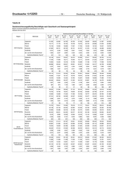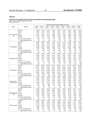 Drucksache 19/12253 – 56 – Deutscher Bundestag – 19. Wahlperiode Tabelle 25 Entwicklung der Mediane der monatlichen Bruttoarbeitsentgelte von sozialversicherungspflichtigen Vollzeitbeschäftigten der Kerngruppe nach den ausgeübten Tätigkeiten (aufsteigend sortiert, Berufshauptgruppen, KldB 2010) Anforderungsniveau Experte Bayern Asylherkunftsstaaten (Top 8) Zeitreihe Relative Veränderung gegenüber Sp. 1 zu Sp. 7 Sp. 1 zu Sp. 2 Sp. 2 zu Sp. 3 Sp. 3 zu Sp. 4 Sp. 4 zu Sp. 5 Sp. 5 zu Sp. 6 Sp. 6 zu Sp. 7 Tätigkeit nach KldB 2010 1 1 1 1 1 1 1 2 3 4 5 6 7 1 1 1 1 1 1 Insgesamt 13,9 2,8 2,8 1,4 0,8 5,4 0,0 11 Land-, Tier-, Forstwirtschaftsberufe X X X X X X X 12 Gartenbauberufe, Floristik X X X X X X X 21 Rohstoffgewinn,Glas-,Keramikverarbeitung X X X X X X X 22 Kunststoff- u. Holzherst.,-verarbeitung X X X X X X X 23 Papier-,Druckberufe, tech.Mediengestalt. X X X X X X X 24 Metallerzeugung,-bearbeitung, Metallbau X X X X X X X 25 Maschinen- und Fahrzeugtechnikberufe X X X X X X X 26 Mechatronik-, Energie- u. Elektroberufe X X X X X X X 27 Techn.Entwickl.Konstr.Produktionssteuer. X X X X X X X 28 Textil- und Lederberufe X X X X X X X 29 Lebensmittelherstellung u. -verarbeitung X X X X X X X 31 Bauplanung,Architektur,Vermessungsberufe X X X X X X X 32 Hoch- und Tiefbauberufe X X X X X X X 33 (Innen-)Ausbauberufe X X X X X X X 34 Gebäude- u. versorgungstechnische Berufe X X X X X X X 41 Mathematik-Biologie-Chemie-,Physikberufe X X X X X X X 42 Geologie-,Geografie-,Umweltschutzberufe X X X X X X X 43 Informatik- und andere IKT-Berufe X X X X X X X 51 Verkehr, Logistik (außer Fahrzeugführ.) X X X X X X X 52 Führer von Fahrzeug- u. Transportgeräten X X X X X X X 53 Schutz-,Sicherheits-, Überwachungsberufe X X X X X X X 54 Reinigungsberufe X X X X X X X 61 Einkaufs-, Vertriebs- und Handelsberufe X X X X X X X 62 Verkaufsberufe X X X X X X X 63 Tourismus-, Hotel- und Gaststättenberufe X X X X X X X 71 Berufe Unternehmensführung,-organisation X X X X X X X 72 Finanzdienstl.Rechnungsw.,Steuerberatung X X X X X X X 73 Berufe in Recht und Verwaltung X X X X X X X 81 Medizinische Gesundheitsberufe X X X X X X X 82 Nichtmed.Gesundheit,Körperpfl.,Medizint. X X X X X X X 83 Erziehung,soz.,hauswirt.Berufe,Theologie X X X X X X X 84 Lehrende und ausbildende Berufe X X X X X X X 91 Geistes-Gesellschafts-Wirtschaftswissen. X X X X X X X 92 Werbung,Marketing,kaufm,red.Medienberufe X X X X X X X 93 Produktdesign, Kunsthandwerk X X X X X X X 94 Darstellende, unterhaltende Berufe X X X X X X X Quelle: Statistik der Bundesagentur für Arbeit x) Aus methodischen Gründen ist ein Ausweis von Entgeltverteilungen oder Quantilen nicht sinnvoll, wenn die Zahl der Beschäftigten mit Angabe zum Entgelt unter 500 liegt.
