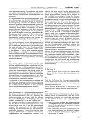 Deutscher Bundestag — 5. Wahlperiode Drucksache V/4002 richte gedachten obersten Gerichtshöfen des Bundes nämlich die heute an die Gerichte gestellten Auf- aus sachlich einleuchtenden Gründen ausnahmsweise gaben von Zwerggerichten nicht mehr befriedigend auch gewisse erstinstanzliche Zuständigkeiten ein- erfüllt werden können. Dagegen ist es fraglich, ob zuräumen. die vielleicht zweckmäßigere Lösung, die Grenzen der Gerichtsbezirke denen der inneren Verwaltung In Übereinstimmung mit der Entschließung des Deut- anzugleichen, durch „Gerichtsverfassungsgesetz" des schen Bundestages vom 29. Mai 1968 (Niederschrift Bundes verwirklicht werden kann. Hinsichtlich der S. 9550 D i. V. m. Drucksache V/2860 S. 36) hat die Rechtsverhältnisse der Organe der Rechtspflege in Bundesregierung inzwischen den Entwurf eines Ge- den Ländern hat der Bund, soweit nicht Fragen der setzes zur Änderung des Grundgesetzes (Artikel 96) Gerichtsverfassung oder des gerichtlichen Verfah- sowie den Entwurf eines Gesetzes zur allgemeinen rens berührt sind (Artikel 74 Nr. 1 GG), nur eine Einführung eines zweiten Rechtszuges in Staats- Rahmenkompetenz (Artikel 98 Abs. 3 Satz 2 und schutzstrafsachen beschlossen und dem Bundesrat Artikel 75 Nr. 1 GG). Unbeschadet dessen konnte (1. Durchgang) zugeleitet. Nach dem vorgeschlage- aber z. B. dem Wunsch — insbesondere der Richter- nen Artikel 96 Abs. 5 GG soll ein Bundesgesetz mit schaft - nach einer Akademie zur beruflichen Fort- Zustimmung des Bundesrates für Strafverfahren auf bildung der Richter und Staatsanwälte in der Weise den Gebieten des Artikels 26 Abs. 1 GG und des entsprochen werden, daß nach einer Vereinbarung Staatsschutzes vorsehen können, daß Gerichte der zwischen Bund und Ländern die Länder mit finan- Länder Gerichtsbarkeit des Bundes ausüben. zieller Unterstützung des Bundes abwechselnd Das vorgeschlagene Ausführungsgesetz soll diese Tagungen veranstalten, an denen Richter und Staats- Art von Gerichtsbarkeit auf ein Oberlandesgericht in anwälte aus Bund und Ländern und aus allen Zwei- jedem Land — mit Revision zum Bundesgerichts- gen der Gerichtsbarkeit teilnehmen können. Die hof — übetragen, und zwar für die Strafsachen, über Richterakademie hat in diesem Jahr erstmals ihre die nach geltendem Recht der Bundesgerichtshof Veranstaltungen aufgenommen. im einzigen Rechtszug entscheidet. Dabei sollen Außerdem hält die Bundesfinanzakademie, eine Ein- — und können — die für eine wirksame zentrale richtung des Bundesfinanzministeriums, seit länge- Strafverfolgung notwendigen staatsanwaltschaftli- rem neben den Veranstaltungen für höhere Beamte chen Zuständigkeiten des Generalbundesanwalts so- der Finanzverwaltungen des Bundes und der Länder wie die Begnadigungsbefugnis des Bundespräsiden- im Einvernehmen mit den Landesjustizverwaltungen ten auf sicherer verfassungsrechtlicher Grundlage und Fortbildungsveranstaltungen für Richter und beibehalten werden. Staatsanwälte auf dem Gebiete des Buchführungs- und des Bilanzwesens sowie des Steuerrechts ab. 5.4 Diese Einrichtung, die sich bewährt hat, ist noch er- Einer weitergehenden Justizreform mit dem Ziel, weiterungsfähig. gewisse Schwerfälligkeiten des Verfahrens und Un- übersichtlichkeiten des Gerichtsaufbaues durch Ver- einheitlichung und Vereinfachung des Verfahrens- 6 Zu Frage 6 rechts und möglicherweise auch durch Abbau des Instanzenzuges zu beseitigen, würde die föderative „Kann der Bund auch in Zukunft auf jegliche Kom- Verteilung der Zuständigkeiten auf dem Gebiete der petenz auf dem Gebiete des Gemeinderechts ver- zichten?" Rechtsprechung nicht entgegenstehen, da der Bund die erforderliche Gesetzgebungszuständigkeit be- 6.1 reits derzeit im wesentlichen innehat. Unterschiede in der Rechtsanwendung werden sich Nach der Aufteilung der Gesetzgebungszuständig- allerdings nie ganz ausschließen lassen. Sie haben keiten des Grundgesetzes gehört das Gemeinderecht ihre Ursache nicht im föderativen System, sondern in grundsätzlich zur ausschließlichen Landesgesetz- der Unabhängigkeit der Richter. In diese Unabhän- gebung (Artikel 70 GG). gigkeit darf keinesfalls eingegriffen werden. Einige wichtige Kompetenzen auf dem Gebiete des Gemeinderechts stehen indessen dem Bunde zu: 5.5 6.1.1 Eine Begrenzung der Gesetzgebungszuständigkeit des Bundes wirkt sich allenfalls auf den Bereichen Nach Artikel 28 Abs. 3 GG obliegt dem Bund die be- der Gerichtsorganisation und der Regelung der sondere Pflicht zu gewährleisten, daß die verfas- Rechtsverhältnisse der Richter (und der übrigen sungsmäßige Ordnung der Länder den Bestimmun- Organe der Rechtspflege — Rechtspfleger, Urkunds- gen des Artikels 28 Abs. 1 und 2 entspricht, insbe- beamte, Staatsanwälte —) in den Ländern aus. sondere, daß Das Verhältnis zwischen „Gerichtsverfassung" — für — das Volk in den Kreisen und. Gemeinden eine die der Bund die Gesetzgebungskompetenz nach Vertretung hat, die aus allgemeinen, unmittel- Artikel 74 Nr. 1 GG hat — und der „Gerichtsorga- baren, freien, gleichen und geheimen Wahlen nisation", die Ländersache ist, ist nicht unbedingt hervorgegangen ist und eindeutig. Der Bund kann zwar als „Gerichtsverfas- — den Gemeinden das Recht gewährleistet ist, sungsrecht" bestimmte Vorschriften über die Min- alle Angelegenheiten der örtlichen Gemein- destgröße (Mindestzahl von Richtern oder Gerichts- schaft im Rahmen des Gesetzes in eigener Ver- eingesessenen) der Amtsgerichte erlassen, weil antwortung zu regeln.