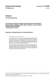 Deutscher Bundestag Drucksache 19/18385 19. Wahlperiode 26.03.2020 Antwort der Bundesregierung auf die Kleine Anfrage der Abgeordneten Stephan Kühn (Dresden), Daniela Wagner, Matthias Gastel, Stefan Gelbhaar und der Fraktion BÜNDNIS 90/DIE GRÜNEN – Drucksache 19/17813 – Sicherheit im Straßenverkehr im Freistaat Sachsen Vorbemerkung der Fragesteller Im Jahr 2018 wurden in Sachsen 107.284 Straßenverkehrsunfälle polizeilich erfasst, dabei gab es 17.731 verunglückte Personen und 198 Tote. Damit stieg die Anzahl der Verkehrstoten in Sachsen auf ein Fünf-Jahres Hoch und im Vergleich zum Jahr 2017 um 34 Prozent. Stark angestiegen sind die Zahl der getöteten zu Fuß Gehenden und Fahrradfahrenden (Statistisches Bundesamt, Fachserie 8, Reihe 7, Verkehr, Verkehrsunfälle, 2018). Diese Entwicklung steht im Gegensatz zum Ziel der Bundesregierung (vgl. Nationales Verkehrssicherheitsprogramm), die Zahl der im Straßenverkehr in Deutschland Getöteten von 2011 bis 2020 um 40 Prozent zu reduzieren. Die fragestellende Fraktion fragt die Bundesregierung, wie sich das Unfallgesche- hen im letzten Jahr in Sachsen entwickelt hat. Die Antwort wurde namens der Bundesregierung mit Schreiben des Bundesministeriums für Verkehr und digitale Infra struktur vom 23. März 2020 übermittelt. Die Drucksache enthält zusätzlich – in kleinerer Schrifttype – den Fragetext.