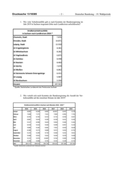 Deutscher Bundestag – 19. Wahlperiode –7– Drucksache 19/18385 16. Wie viele Verkehrstote gab es nach Kenntnis der Bundesregierung im Jahr 2019 in Sachsen insgesamt (bitte nach Landkreisen aufschlüsseln)?