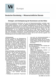Europa Strategie- und Arbeitsplanung der Kommission und des Rates Sowohl die Europäische Kommission als auch die Ratspräsidentschaft(en) erarbeiten regel- mäßig Programmpapiere, in denen sie geplante (Rechtsetzungs-)Tätigkeiten vorstellen. Von herausragender Bedeutung sind die jährliche Strategieplanung und das darauf aufbauende Legislativ- und Arbeitsprogramm der Kommission sowie das Arbeitsprogramm der jeweiligen Ratspräsidentschaft und das gemeinsame Achtzehnmonatsprogramm im Rahmen der „Trio- Präsidentschaft“. Für die nationalen Parlamente und für alle anderen Akteure, die den Rechtsetzungsprozess auf europäischer Ebene beeinflussen wollen, sind diese Papiere Grund- lage einer frühzeitigen Positionierung. Der Meinungsaustausch über die jährliche Strategie- planung der Kommission ermöglicht es darüber hinaus, aktiv auf den Inhalt des Legislativ- und Arbeitsprogramms der Kommission Einfluss zu nehmen. I. EU-Kommission nung durch die Kommissionsdienststellen in Rechtliche Grundlage für die Strategieplanung ihren Management-Plänen (Dezember); und das Legislativ- und Arbeitsprogramm der - Erstellung eines Berichts über die durchge- Kommission ist Artikel 2 ihrer Geschäftsordnung. führten Arbeiten, die Mittelverwendung und die Den inhaltlichen Rahmen dieser Programmpa- erzielten Ergebnisse (Juli des darauf folgen- piere bilden die dort ebenfalls vorgesehenen den Jahres). mehrjährigen strategischen Zielsetzungen der Jährliche Strategieplanung Kommission. Sie decken derzeit den Zeitraum 2005 bis 2009 ab. Die vier strategischen Ziele Die Ende Februar/Anfang März vorgelegte jähr- sind: Wohlstand, Solidarität, Sicherheit und liche Strategieplanung: Freiheit sowie eine stärkere Position Europas in - legt die strategischen Prioritäten für das der Welt. folgende Jahr fest, - definiert die notwendigen Initiativen zur Zyklus der Strategie- und Programmplanung Umsetzung der Prioritäten und Im Weißbuch über die Reform der Kommission - veranschlagt die Haushaltsmittel, die zur Um- (2000) war – neben der Personalpolitik und setzung der Prioritäten erforderlich sind. dem Finanzmanagement – ein neues strategi- Die Kommission führt über ihre jährliche Strate- sches Planungs- und Programmierungsverfahren gieplanung einen „konstruktiven Dialog und Mei- zentrales Thema. Der erste Zyklus der Strategie- nungsaustausch“ mit den Gemeinschaftsorga- und Programmplanung der Kommission wurde nen, deren Ansichten in die Entwicklung des Le- 2001 eingeleitet. Diesen politikorientierten Zyklus gislativ- und Arbeitsprogramms Eingang finden. kennzeichnen fünf Bestandteile: Während die nationalen Regierungen damit di- - Bestimmung der Prioritäten und entsprechen- rekt beteiligt sind, ist die Lage der nationalen der Initiativen mit Hilfe der jährlichen Stra- Parlamente eine andere. Zwar zeigt sich die tegieplanung und Festlegung der globalen Kommission offen für deren Beiträge, macht aber Rahmenbedingungen für die Ressourcenzu- zugleich deutlich, dass sie das „institutionelle weisung (Februar/März); Dreieck“ nicht in Frage stellt: Das Europäische - Aufführung der Finanzmittel im Haushalts- Parlament (EP) ist ihr erster Ansprechpartner in vorentwurf als detaillierte Vorausschätzungen Fragen der parlamentarischen Repräsentation anhand der Rahmenbedingungen (Mai/Juni); der EU; als Vertretung der Mitgliedstaaten sieht - Umsetzung der politischen Prioritäten durch sie primär den Rat. Die nationalen Parlamente das Legislativ- und Arbeitsprogramm der Kom- werden deshalb weiterhin auch über ihre jewei- mission in einen konkreten Aktionsplan lige Regierung Einfluss nehmen müssen. Parallel (Oktober); dazu findet nunmehr im Rahmen der Konferenz - Festlegung der operationellen Programmpla- der Ausschüsse für Gemeinschafts- und Europa- Nr. 018/07 (22. Mai 2007)