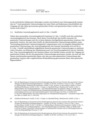 Wissenschaftliche Dienste Ausarbeitung Seite 29 WD 9 - 3000 - 098/19 Die Anwendbarkeit des GenDG setzt damit zunächst einmal grundsätzlich voraus, dass der zu 71 bewertende Sachverhalt genetische Untersuchungen im Sinne des § 3 Nr. 1 GenDG betrifft. Erfasst werden damit alle Arten genetischer Untersuchungen, also auch solche, die nicht eine Erkrankung oder eine gesundheitliche Störung betreffen, wie zum Beispiel Tests über äußere 72 Erscheinungsmerkmale wie die Augenfarbe oder sonstige sog. Life-Style-Tests. Anders als bei genetischen Untersuchungen zur Klärung der Abstammung (§ 17 GenDG) und solchen im Versicherungsbereich (§ 18 GenDG) sowie im Arbeitsleben (§§ 19 bis 22 GenDG) beschränkt sich der Geltungsbereich der im zweiten Abschnitt des GenDG (§§ 7 bis 16) getroffenen Regelungen jedoch auf genetische Untersuchungen zu medizinischen Zwecken im Sinne des 73 § 3 Nr. 6 GenDG. Damit sind insbesondere die sog. Life-Style-Tests, die keinen gesundheitli- chen Bezug aufweisen, vom Anwendungsbereich des zweiten Abschnitts des GenDG insgesamt ausgeschlossen. Nach dem Wortlaut des § 2 Abs. 1 GenDG gilt das Gesetz nur für genetische Analysen, die im Rahmen genetischer Untersuchungen durchgeführt werden. Nach der Konzeption des Gesetzes werden jedoch – zumindest von einzelnen Regelungen – auch genetische Analysen im Sinne des § 3 Nr. 2 GenDG erfasst, die isoliert vorgenommen werden, also nicht in eine genetische Untersu- chung eingebunden sind. So ist beispielsweise die isolierte Vornahme einer genetischen Analyse zu medizinischen Zwecken Gegenstand der Regelung des § 26 Abs. 1 Nr. 1 GenDG, nach der ein Verstoß gegen das Verbot des § 7 Abs. 2 GenDG, eine genetische Analyse zu medizinischen Zwecken außerhalb des Rahmens einer genetischen Untersuchung im Sinne des § 3 Nr. 6 GenDG vorzunehmen, eine Ordnungswidrigkeit darstellt, die mit einer Geldbuße geahndet werden 74 kann. Der Anwendungsbereich des Gesetzes umfasst – wie bereits erwähnt – auch den Umgang mit den bei genetischen Untersuchungen im Sinne des § 3 Nr. 1 GenDG gewonnenen Proben (vgl. § 3 Nr. 10 GenDG) und genetischen Daten (vgl. § 3 Nr. 11 GenDG). Entsprechend dem Sinn und Zweck des Gesetzes werden aber auch solche Proben vom GenDG erfasst, die zwar zu Zwecken der Durchführung genetischer Untersuchung gewonnen, an denen jedoch keine geneti- schen Untersuchungen vorgenommen wurden, da – etwa im Hinblick auf den Einwilligungsvor- behalt des § 8 Abs. 1 Satz 1 GenDG – für eine wirkungsvolle Umsetzung bestimmte im Gesetz 71 Stockter, in: Prütting (Hrsg.), Medizinrecht Kommentar, GenDG, § 2 Rn. 14. Der Anwendungsbereich des Gesetzes ist jedoch nicht ausschließlich auf genetische Untersuchungen im Sinne des § 3 Nr. 1 GenDG und die aus ihnen gewonnenen Ergebnisse begrenzt. So knüpfen die Benachteiligungsverbote der §§ 4 und 21 GenDG unmittelbar an den Begriff der genetischen Eigenschaften an und erfassen damit nach dessen Definition in § 3 Nr. 4 GenDG auch genetische Merkmale, die nicht über genetische Untersuchungen im Sinne des § 3 Nr. 1 GenDG gewonnen wurden, vgl. hierzu Stockter, in: Prütting (Hrsg.), Medizinrecht Kommentar, GenDG, § 2 Rn. 3, § 4 Rn. 33 f. und § 21 Rn. 9. 72 Stockter, in: Prütting (Hrsg.), Medizinrecht Kommentar, GenDG, § 2 Rn. 14; anderer Ansicht Kern, in: Kern (Hrsg.), GenDG, § 2 Rn. 3; zu den sog. Life-Style-Tests und deren rechtlicher Einordnung vgl. näher Schillhorn/Heidemann, GenDG, § 2 Rn. Rn. 13 bis 16a mit eingehenden Nachweisen aus der Literatur. 73 Zum Begriff der genetischen Untersuchung zu medizinischen Zwecken, der nach § 3 Nr. 6 GenDG sowohl diagnostische genetische Untersuchungen im Sinne des § 3 Nr. 7 GenDG als auch prädiktive genetische Untersuchungen im Sinne des § 3 Nr. 8 GenDG umfasst, vgl. eingehend unten Gliederungspunkt 4.4. 74 Stockter, in: Prütting (Hrsg.), Medizinrecht Kommentar, GenDG, § 2 Rn. 15.