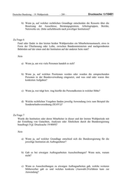 Deutscher Bundestag – 19. Wahlperiode – 289 – Drucksache 19/10481 b) Wenn ja, auf welcher rechtlichen Grundlage entscheiden die Ressorts über die Besetzung der Ausschüsse, Beratungsgremien, Arbeitsgruppen, Beiräte, Netzwerke etc. (bitte aufschlüsseln nach jeweiliger Institution)? Zu Frage 6 Fand oder findet in den letzten beiden Wahlperioden ein Mitarbeiteraustausch, etwa in Form der Überlassung oder Leihe, zwischen Bundesministerien und nachgeordneten Behörden auf der einen und der Institution auf der anderen Seite statt? Nein a) Wenn ja, um wie viele Personen handelt es sich? b) Wenn ja, auf welchen Positionen werden oder wurden die entsprechenden Personen in der Bundesverwaltung eingesetzt, und was sind oder waren ihre konkreten Aufgaben? c) Wenn ja, wer trägt bzw. trug hierfür die Personalkosten in welcher Höhe? d) Welche rechtlichen Vorgaben fanden jeweilig Anwendung (wie zum Beispiel die Sonderurlaubsverordnung (SUrlV))? Zu Frage 7 Wurde die Institution oder deren Mitarbeiter in dieser und der letzten Wahlperiode mit der Erstellung von Gutachten, Analysen oder Ähnlichem durch die Bundesregierung beauftragt (Vgl. Drucksache 19/4069)? Nein a) Wenn ja, auf welcher Grundlage entschied sich die Bundesregierung für die jeweilige Institution als Auftragnehmer? b) Gab es bei etwaigen Auftragsarbeiten Ausschreibungen? Wenn nein, warum nicht? c) Wenn es Ausschreibungen zu etwaigen Auftragsarbeiten gab, welche weiteren Mitbewerber gab es und welches konkrete (Auswahl-)Verfahren kam zur Anwendung?